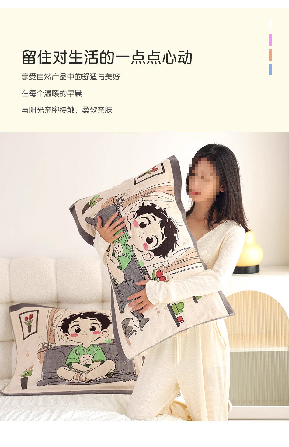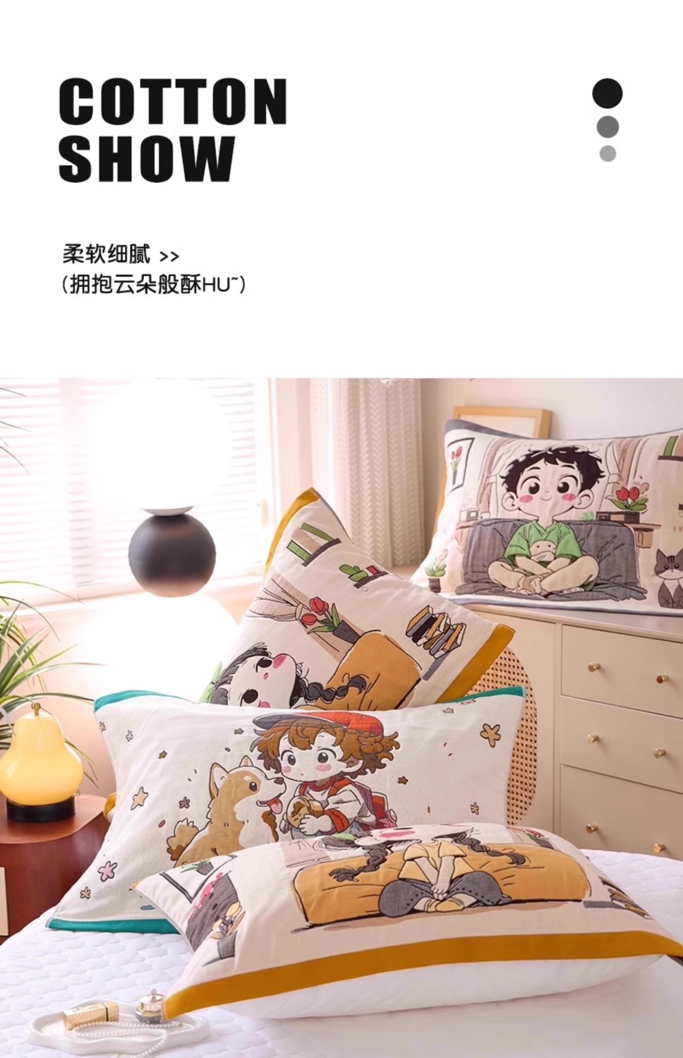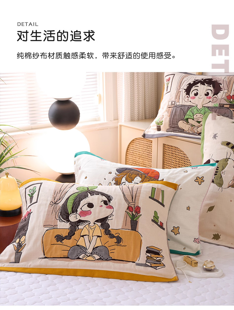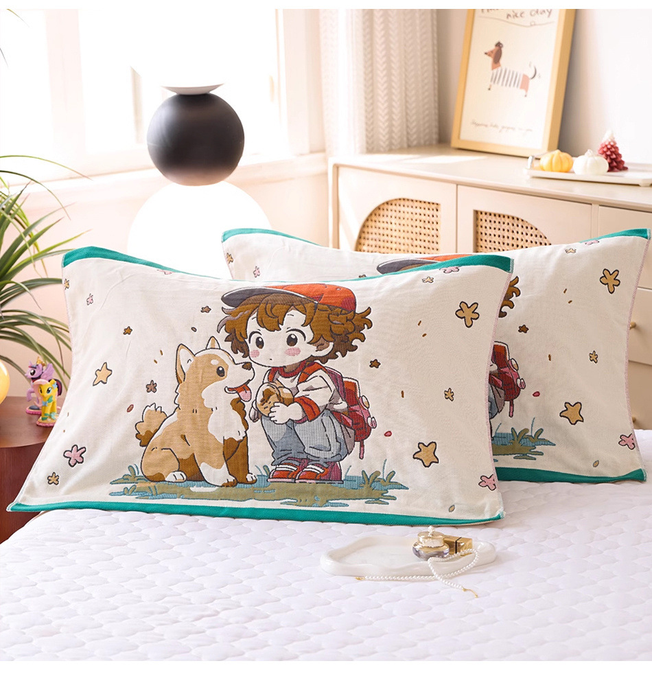 엄마와 아기 등급 8겹 면 거즈 베개 커버, 고급 만화 귀여운 부드러운 땀 방지 면 두꺼운 베개 커버, 무료 배송스토어 가기