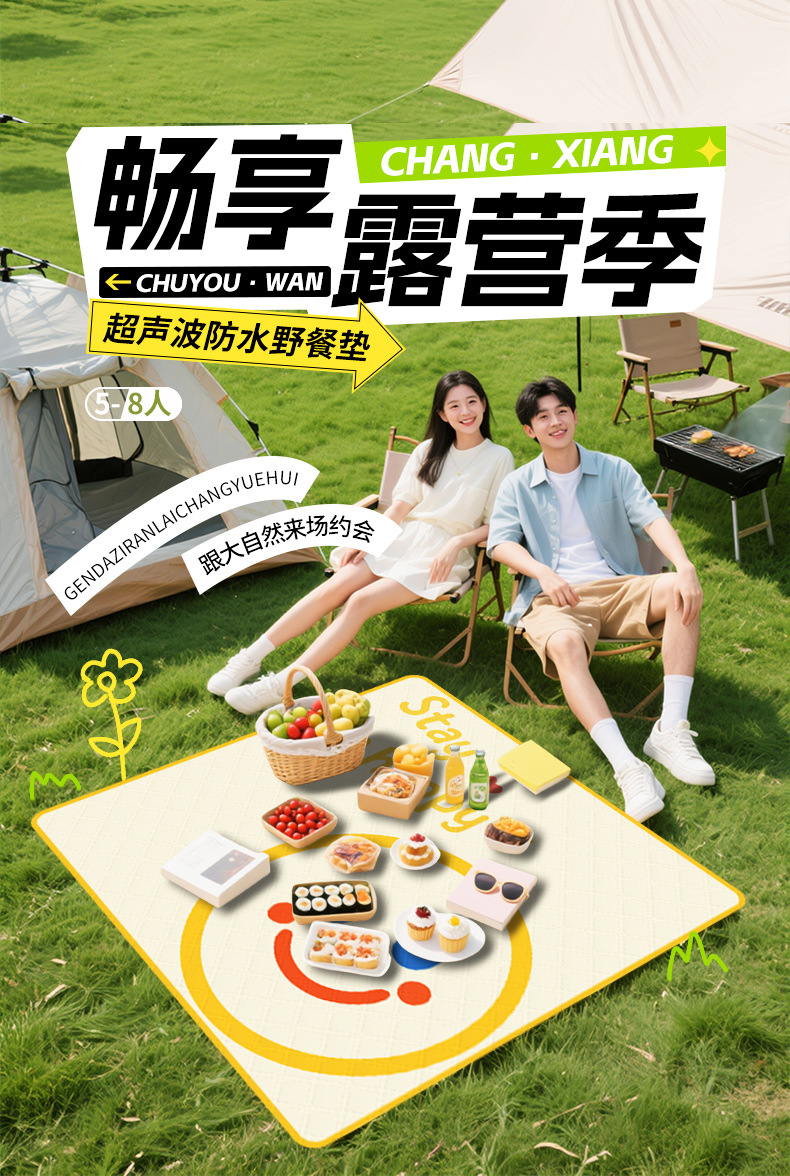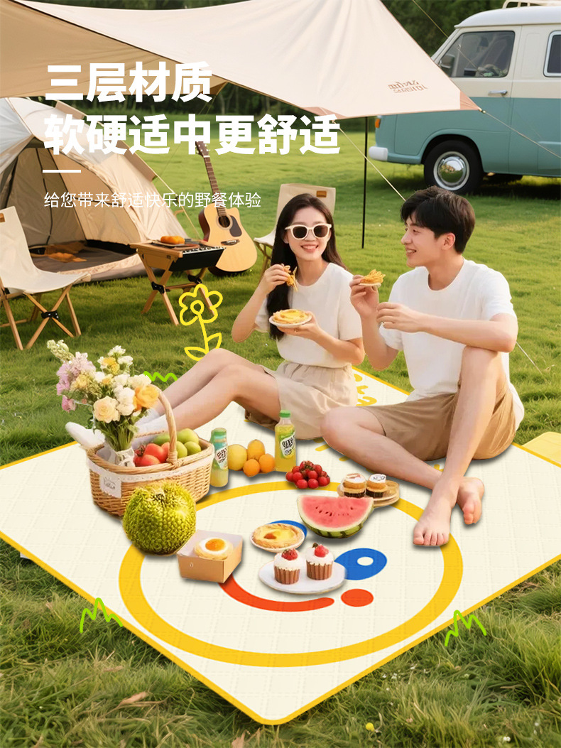 뜨거운 판매 휴대용 초음파 피크닉 매트 웃는 얼굴 휴대용 방습 매트 야외 캠핑 해변 잔디 쿠션 선물스토어 가기