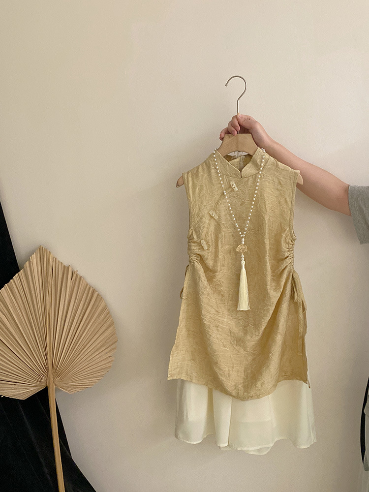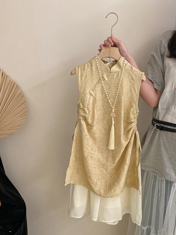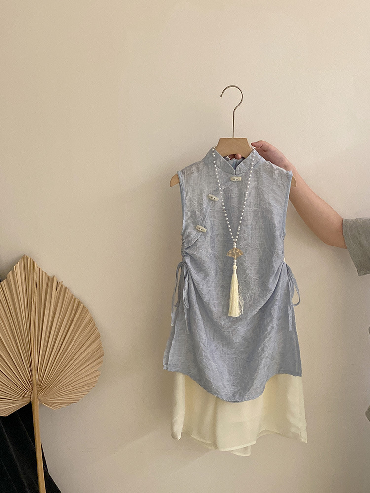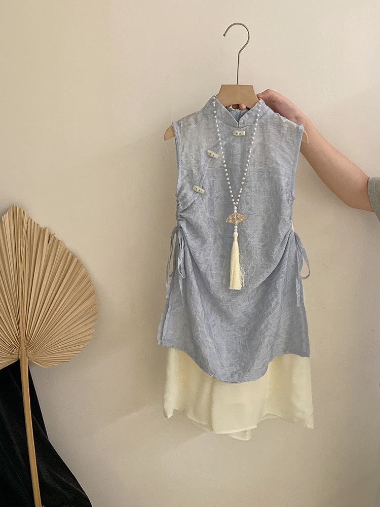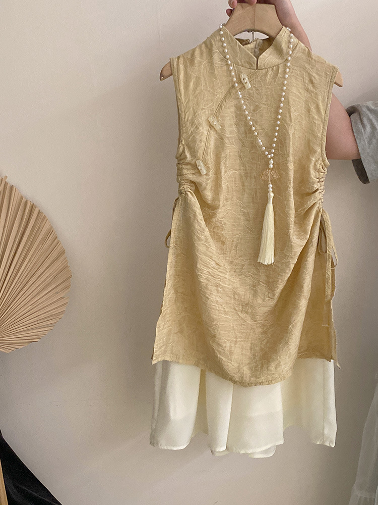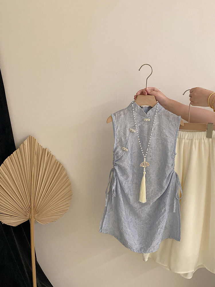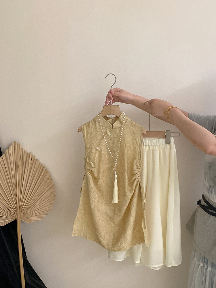 새로운 민족 스타일 레트로 새로운 중국 스타일 소녀 여름 새로운 민소매 톱 2025 캐주얼 와이드 레그 바지 투피스 세트