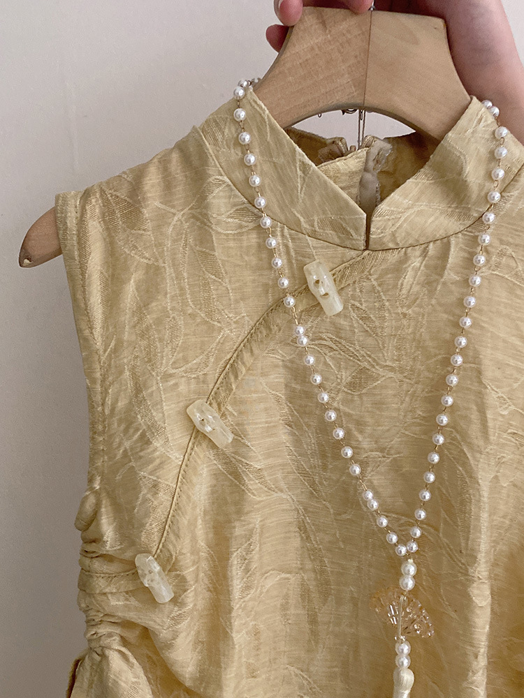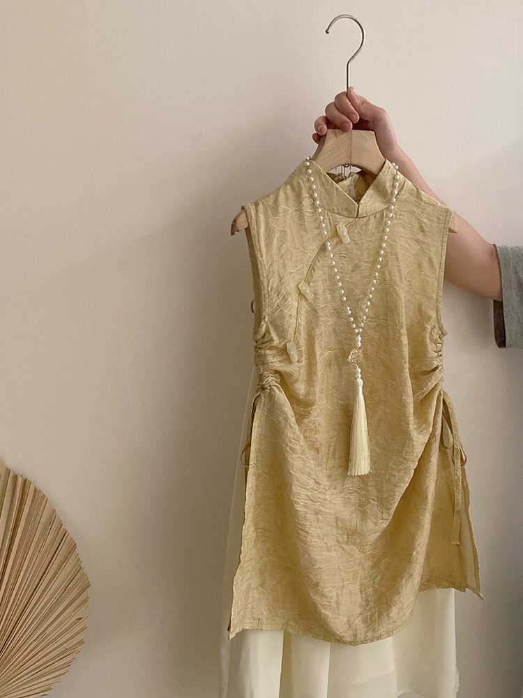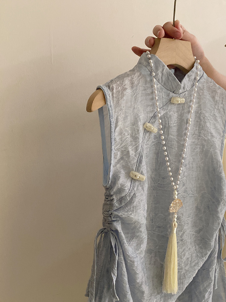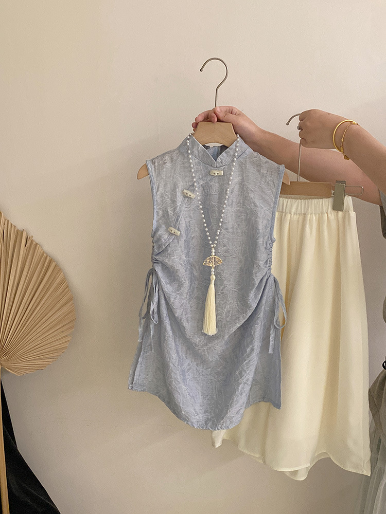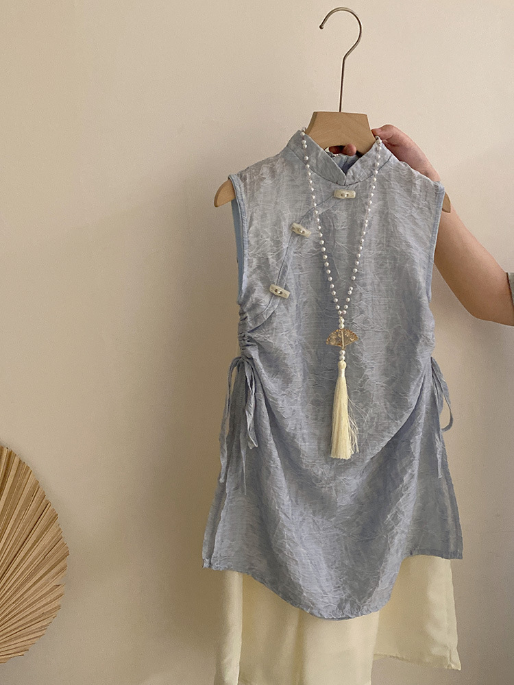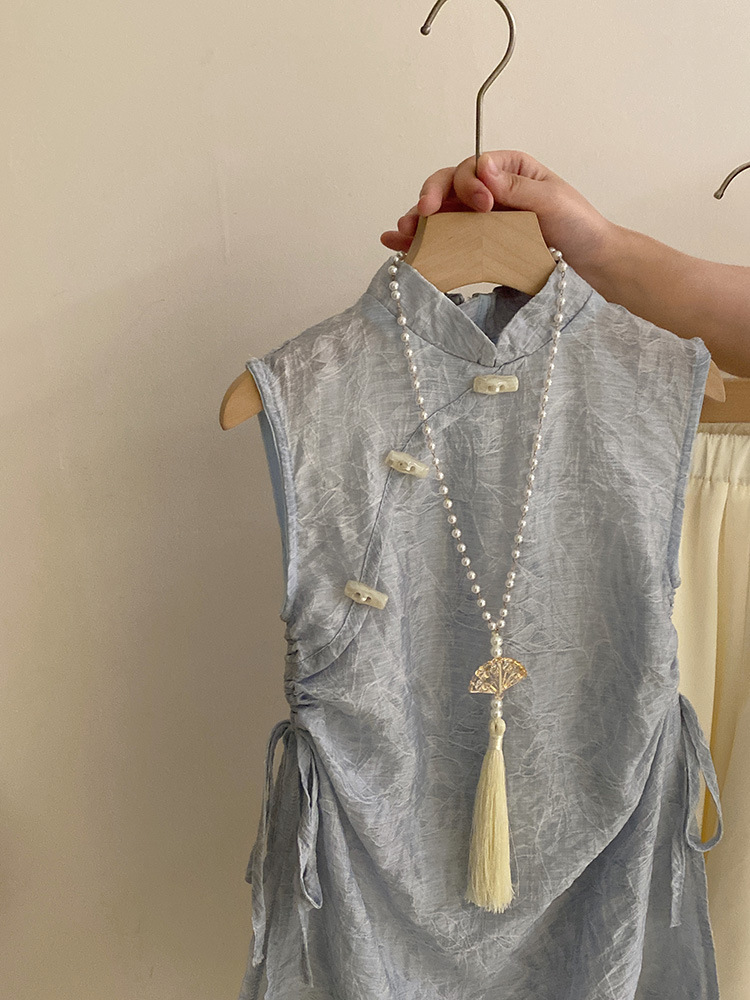새로운 민족 스타일 레트로 새로운 중국 스타일 소녀 여름 새로운 민소매 톱 2025 캐주얼 와이드 레그 바지 투피스 세트스토어 가기