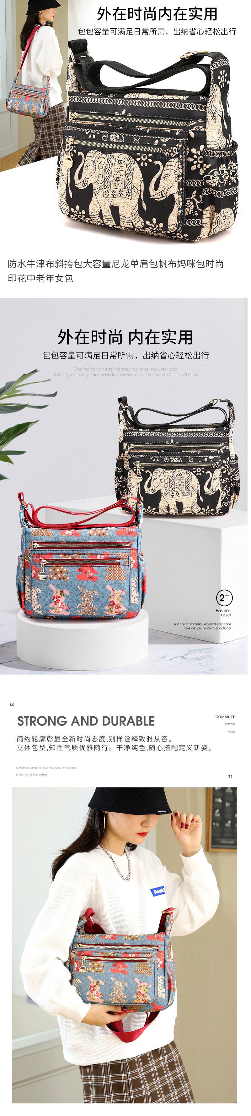 방수 옥스포드 천 크로스 바디 백 대용량 나일론 숄더 백 캔버스 엄마 가방 중년 및 노인 여성을위한 세련된 인쇄 가방