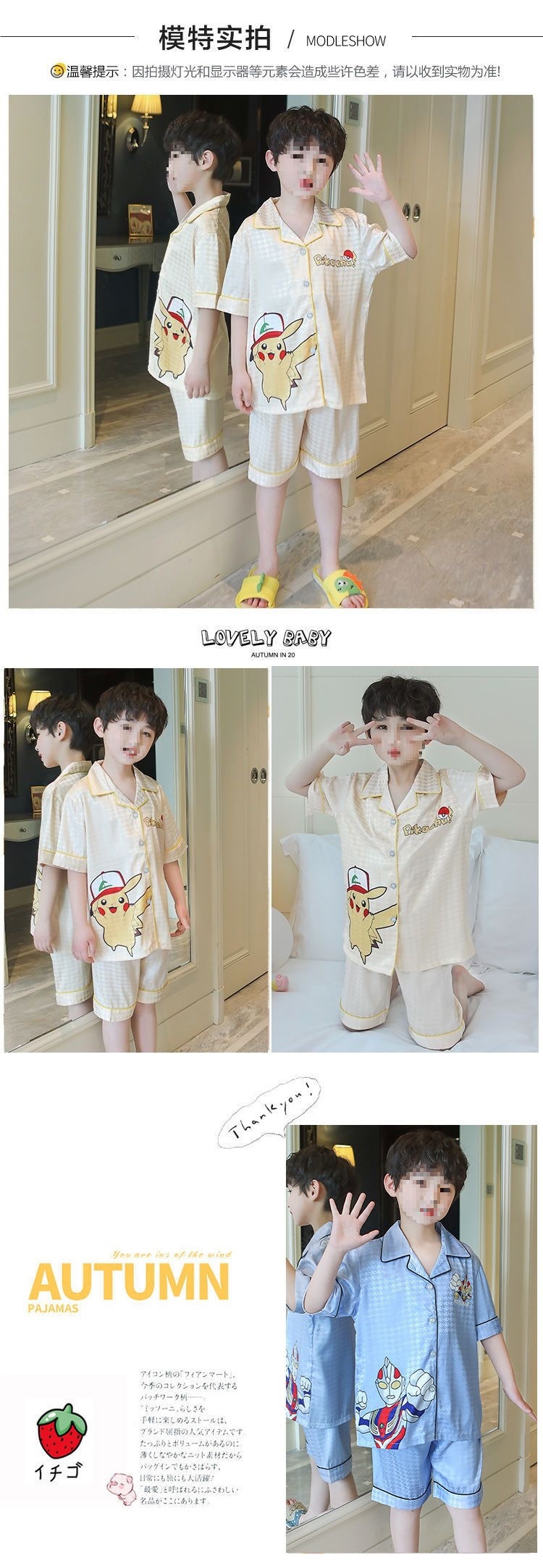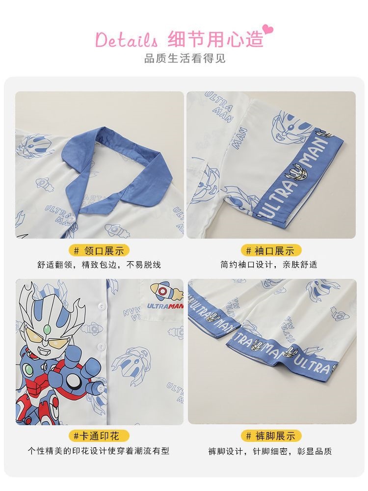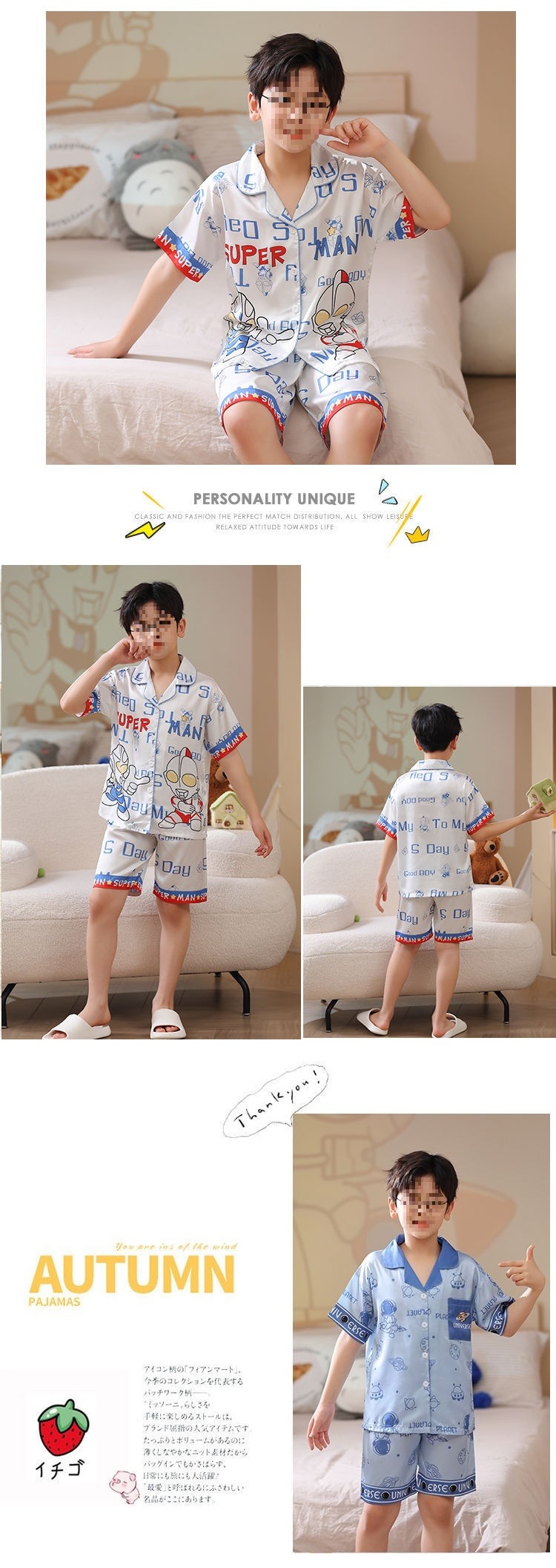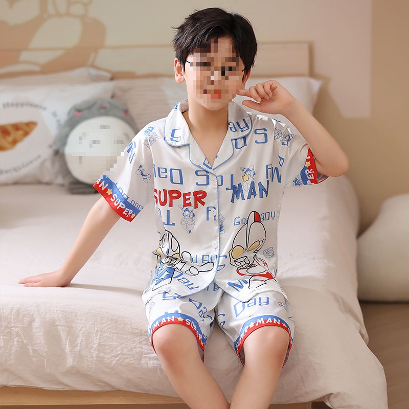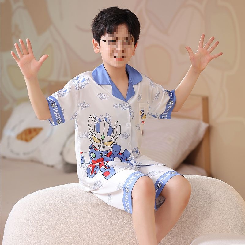 여름 소년 아이스 실크 울트라맨 5점 홈웨어 수분 흡수 여름 느슨한 부모-자식 반팔 잠옷스토어 가기