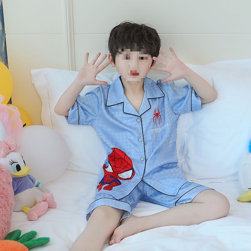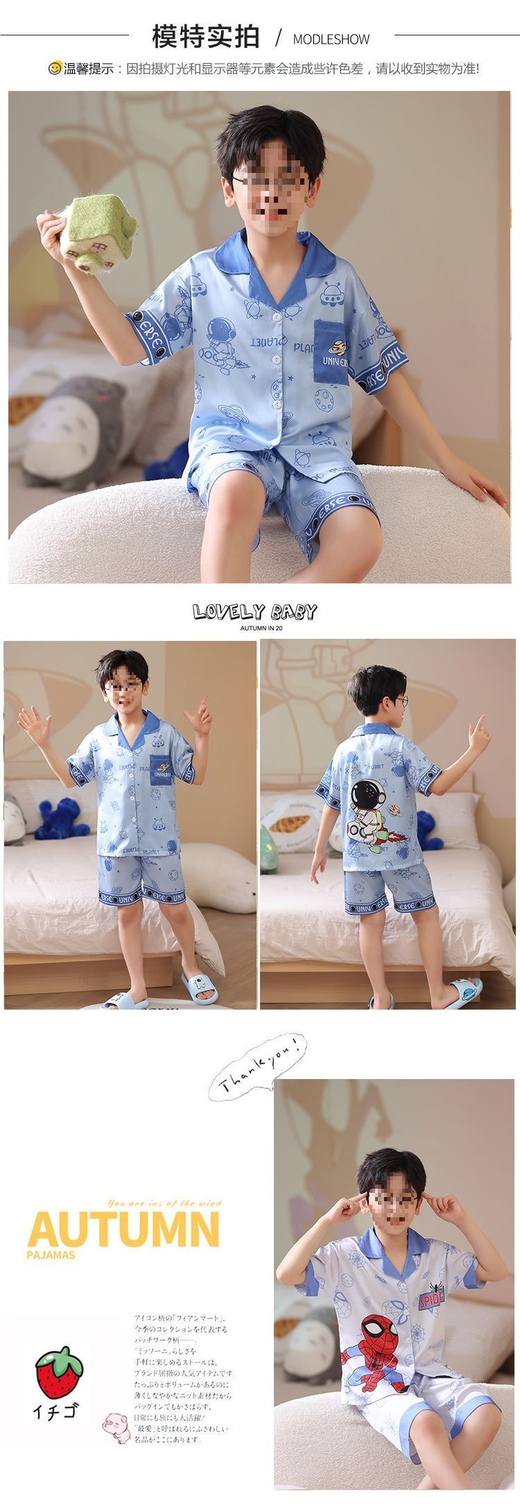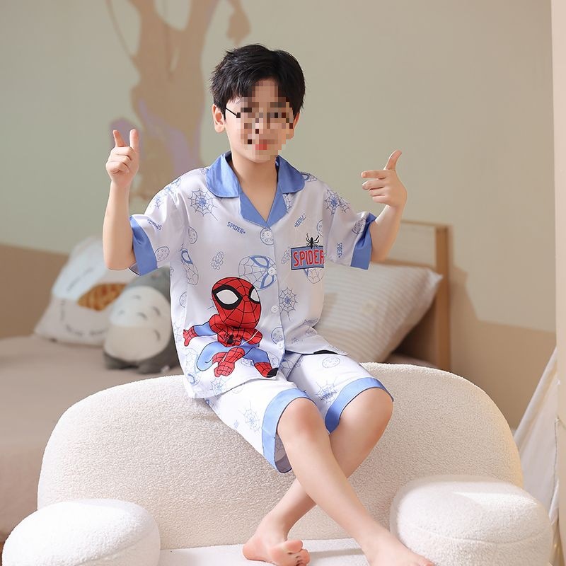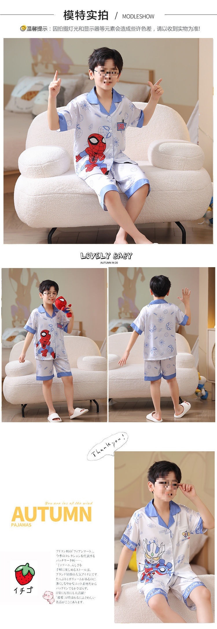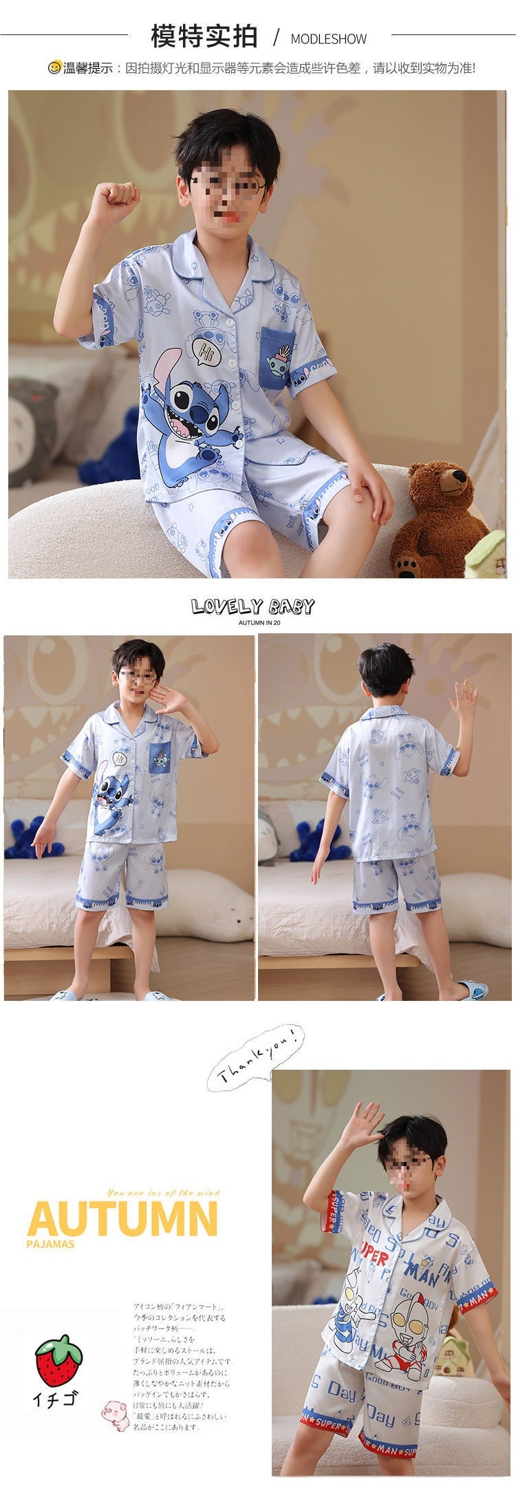 여름 소년 아이스 실크 울트라맨 5점 홈웨어 수분 흡수 여름 느슨한 부모-자식 반팔 잠옷스토어 가기