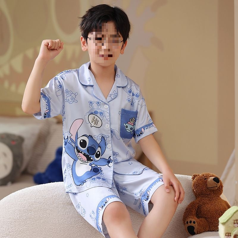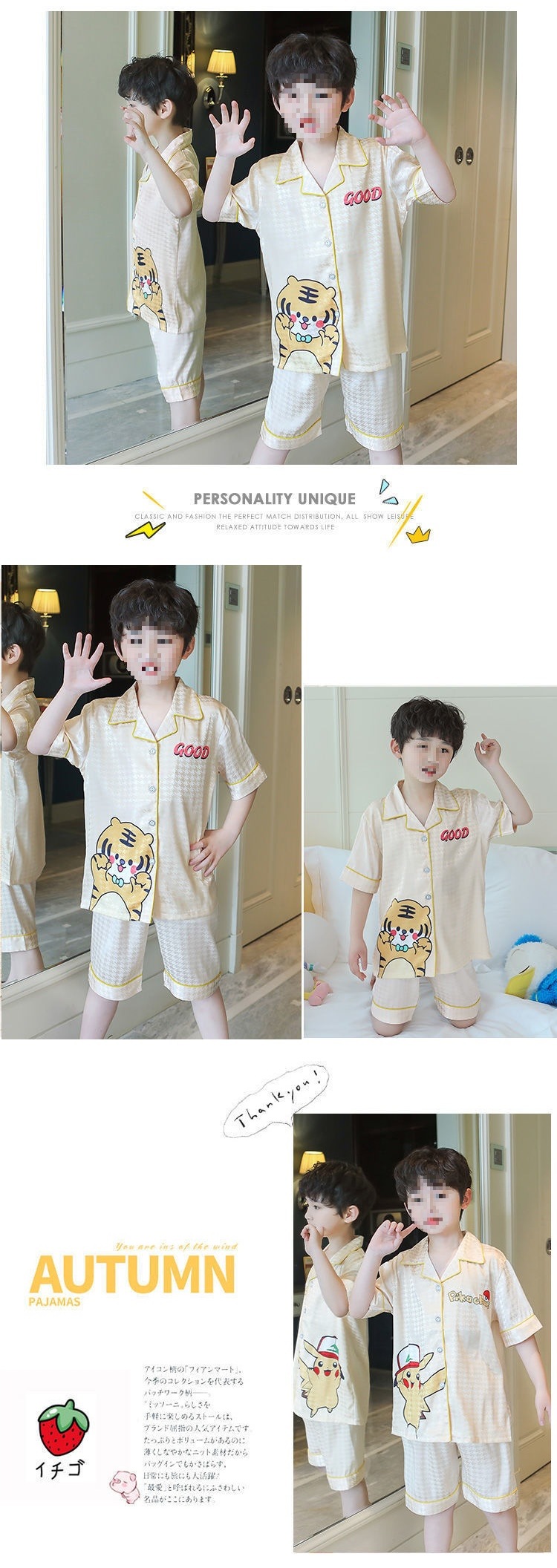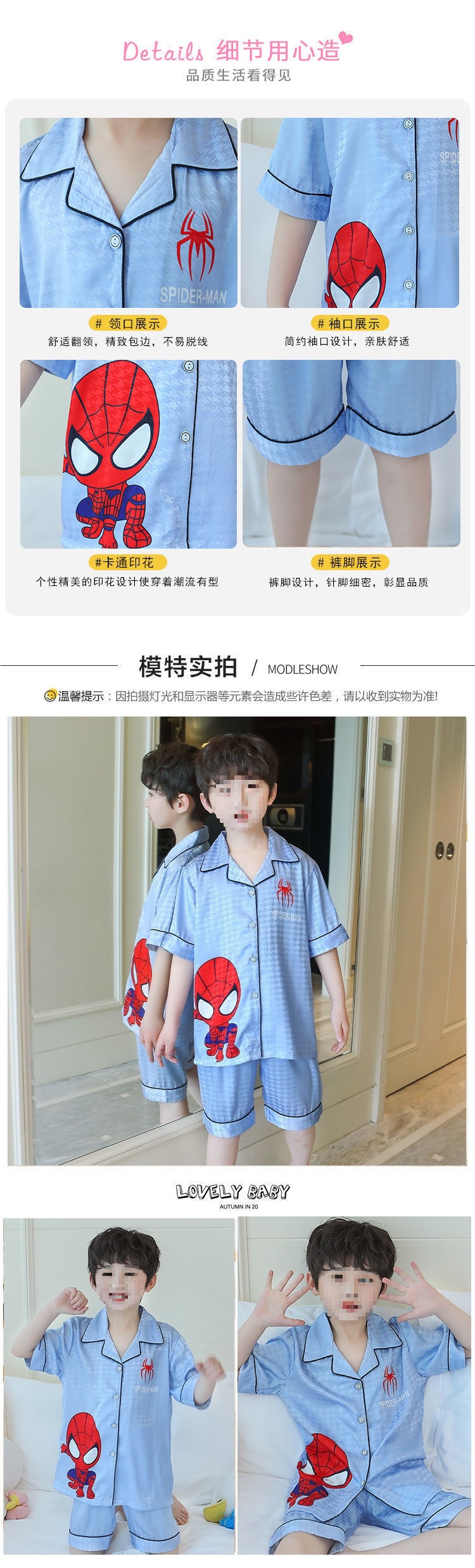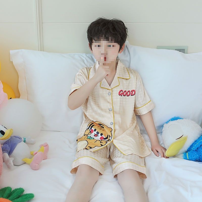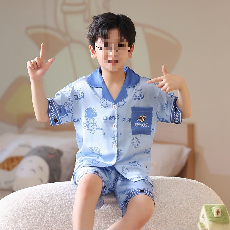 여름 소년 아이스 실크 울트라맨 5점 홈웨어 수분 흡수 여름 느슨한 부모-자식 반팔 잠옷스토어 가기