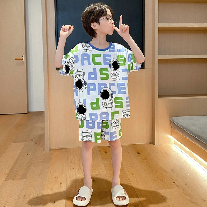 소년 잠옷 여름 얇은 반팔 만화 소년 보물 어린이 에어컨 셔츠 청소년 학생 가정 의류스토어 가기