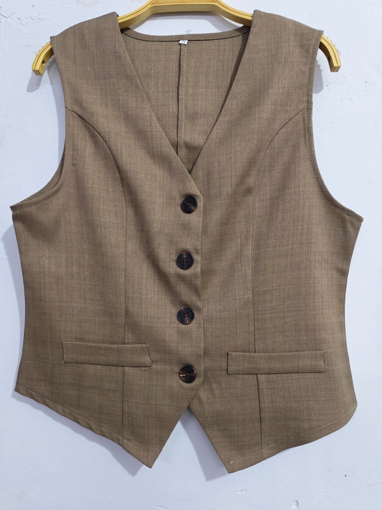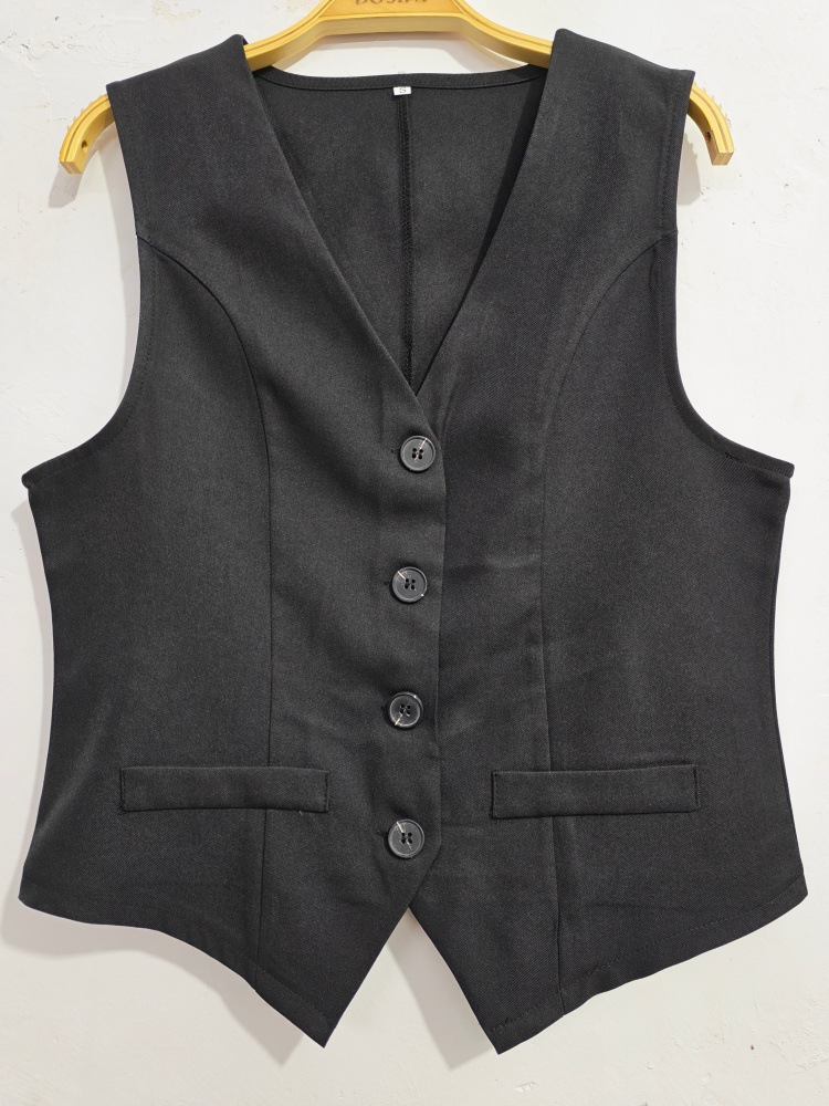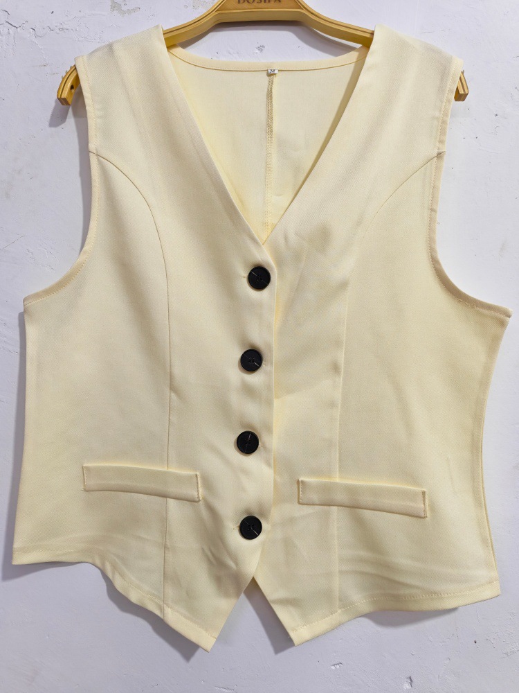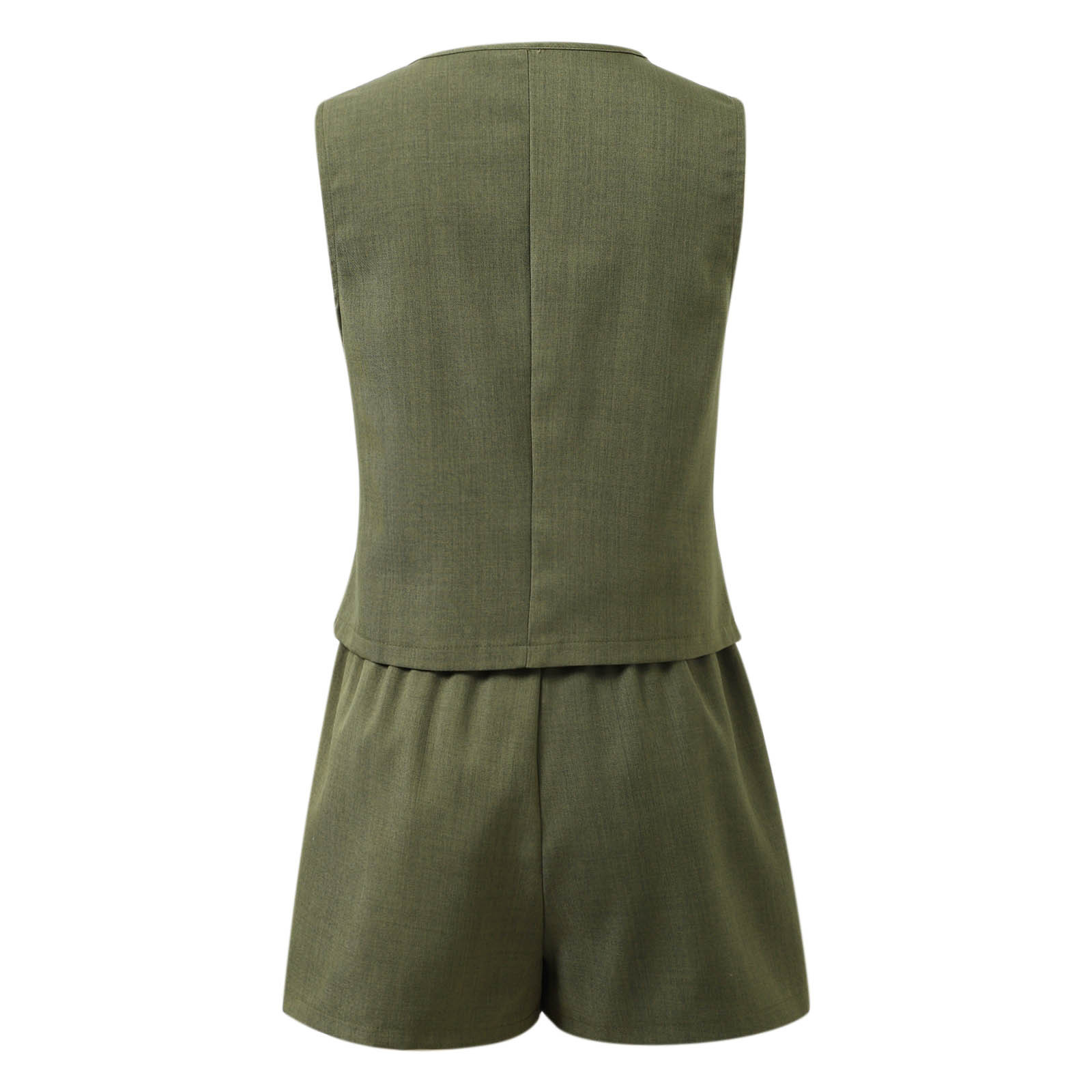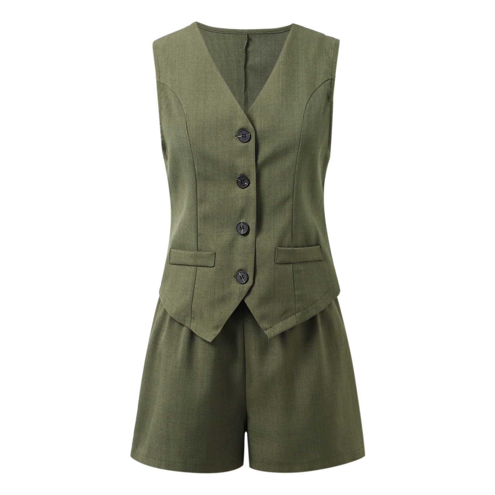 국경 간 여성 의류 Amazon 새로운 우아한 통근자 v 넥 버튼 장식 조끼 반바지 여성용 솔리드 컬러 투피스 슈트스토어 가기