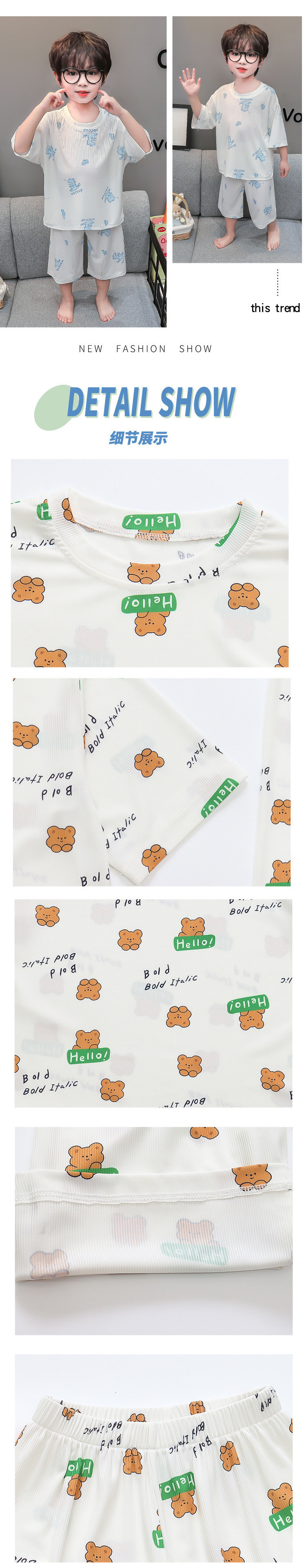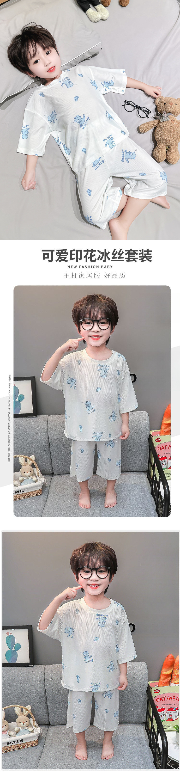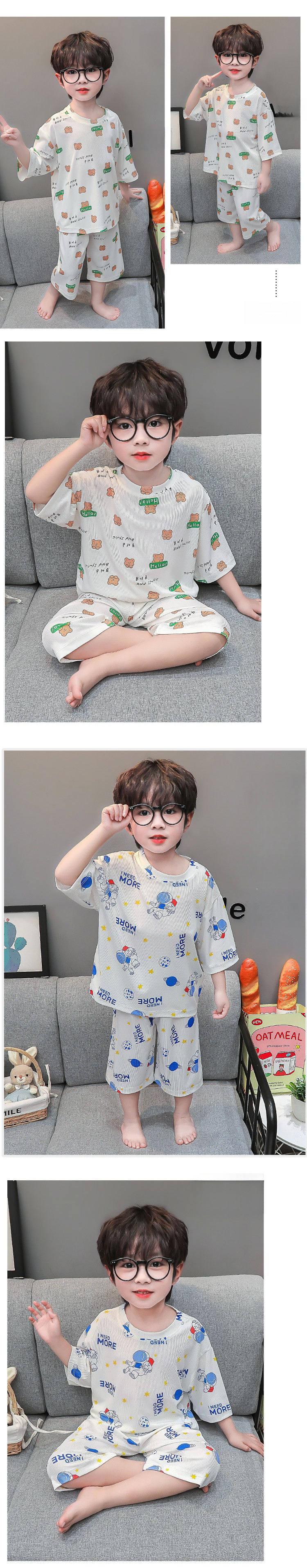 소년 얼음 실크 잠옷 여름 소년 아기 얇은 반팔 에어컨 옷 어린이 홈 의류 세트스토어 가기