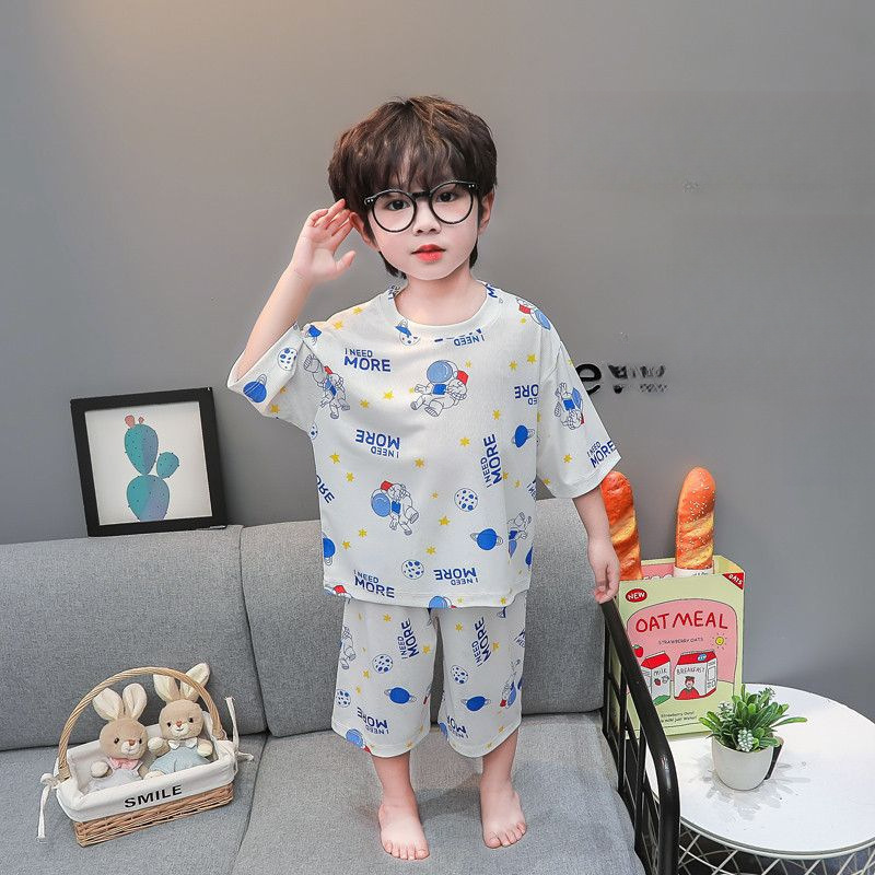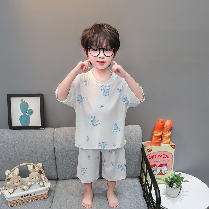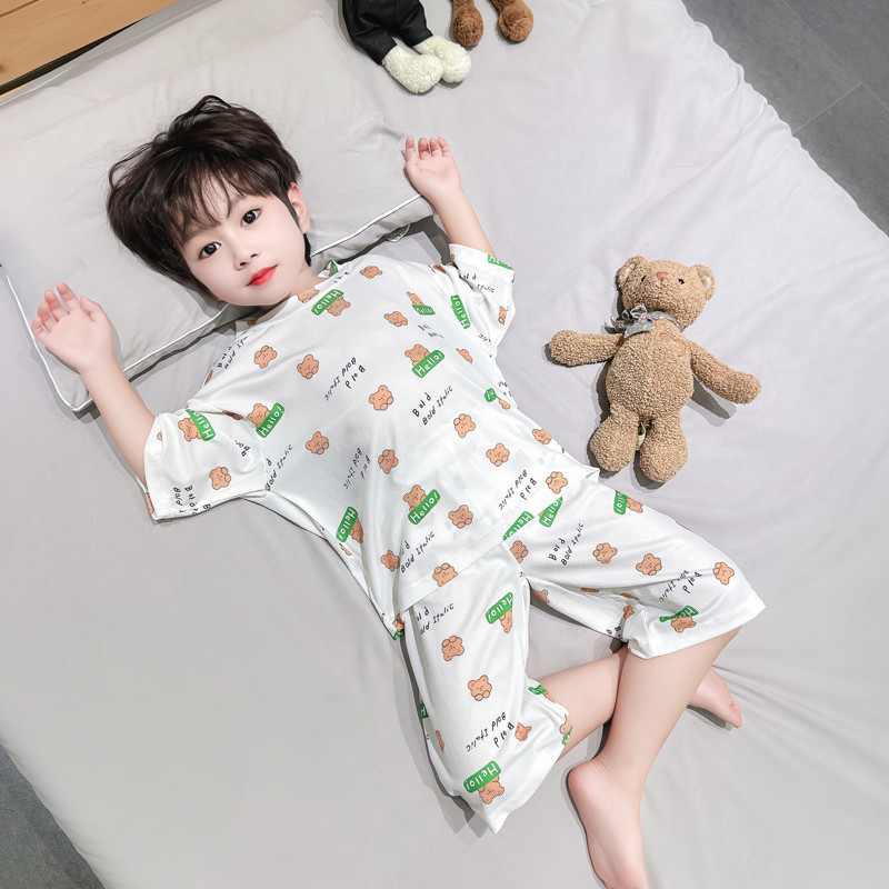 소년 얼음 실크 잠옷 여름 소년 아기 얇은 반팔 에어컨 옷 어린이 홈 의류 세트