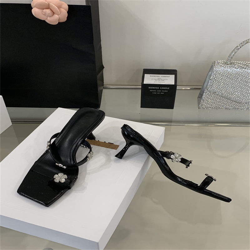 여성용 프렌치 하이엔드 슬리퍼, 2025 여름 스틸레토 힐, 요정 스타일 라인스톤 슬리퍼, 하이힐스토어 가기
