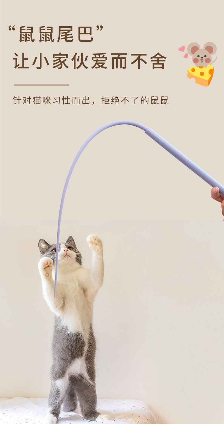 新品硅胶逗猫棒猫猫玩具老鼠尾巴耐咬可替换猫咪互动仿真抓鼠逗猫