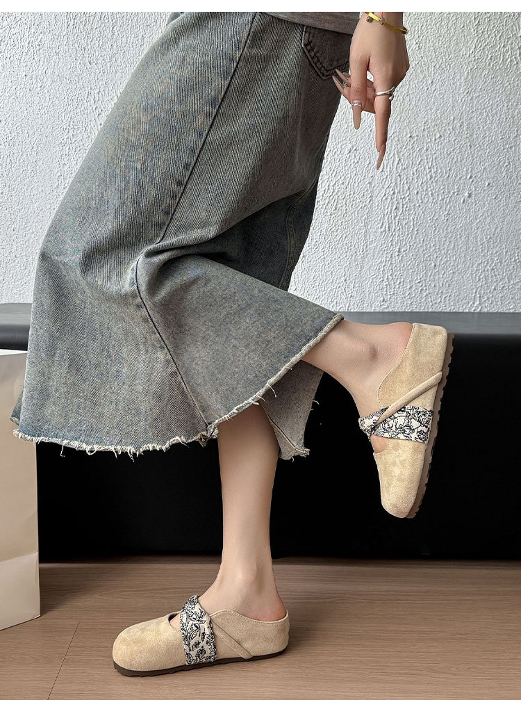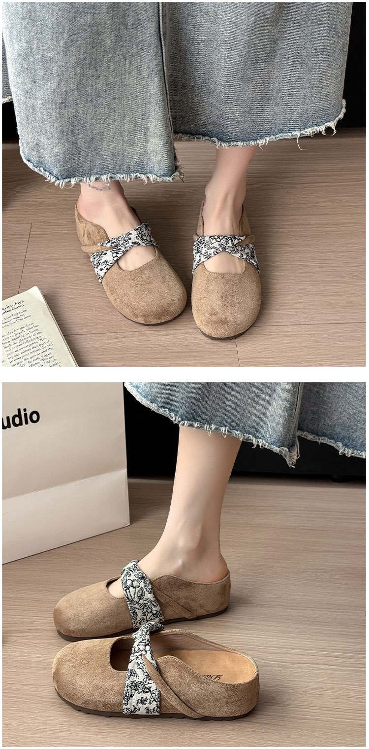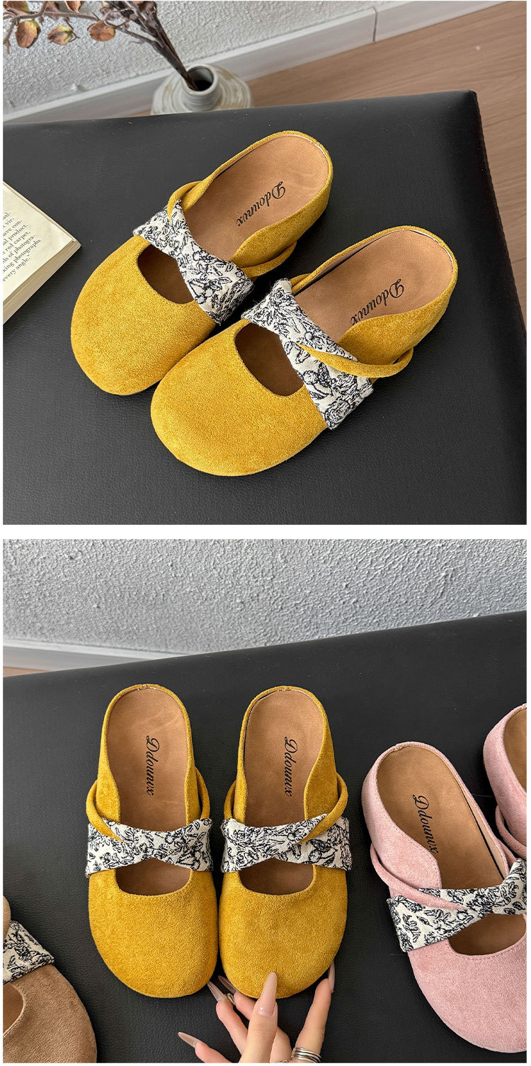 레트로 캐주얼 여아 플랫 슈즈, 여름 패션 이브닝 스타일 라운드 토 펌프스 메리 제인 할머니 슈즈 하프백 슬리퍼