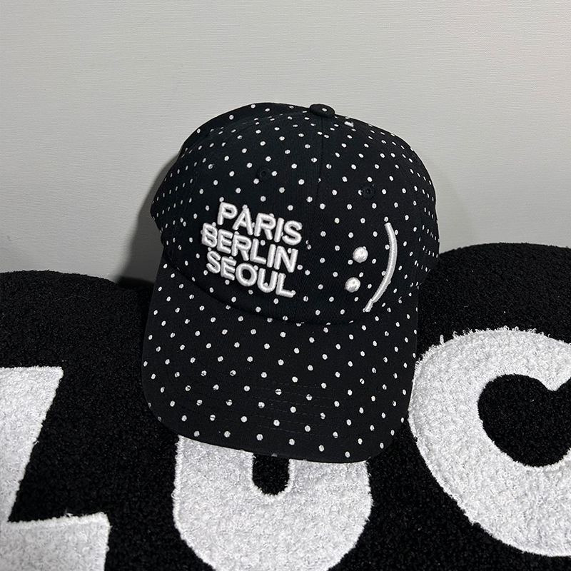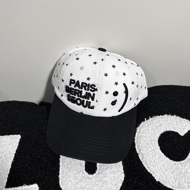 한국 니치 스마일리 웨이브 도트 스타 레터 야구 모자 여성용, 큰 머리 둘레, 캐주얼하고 다재다능한 남성용 피크 캡스토어 가기
