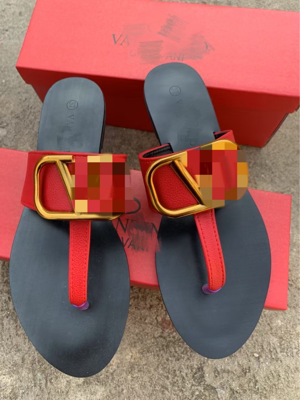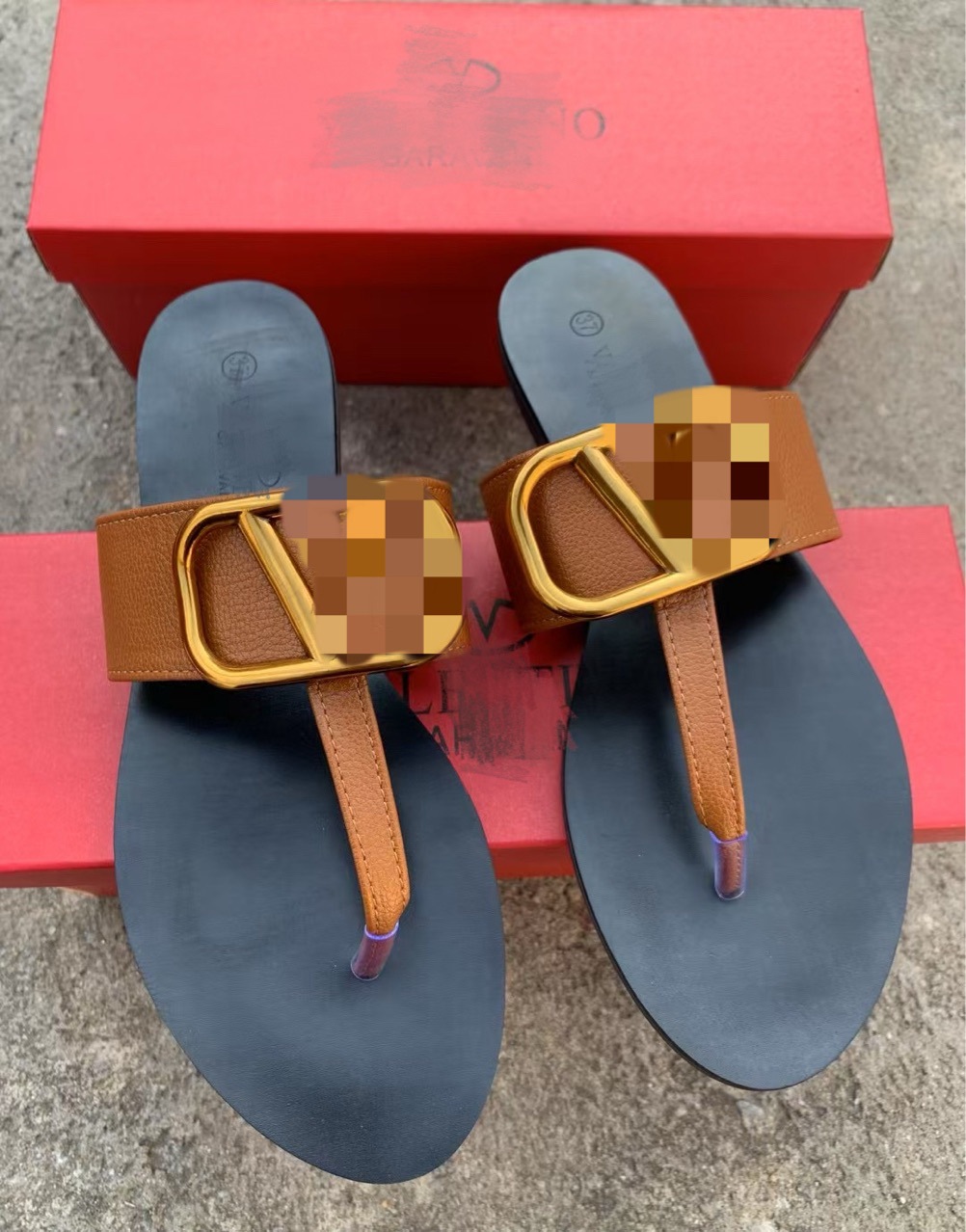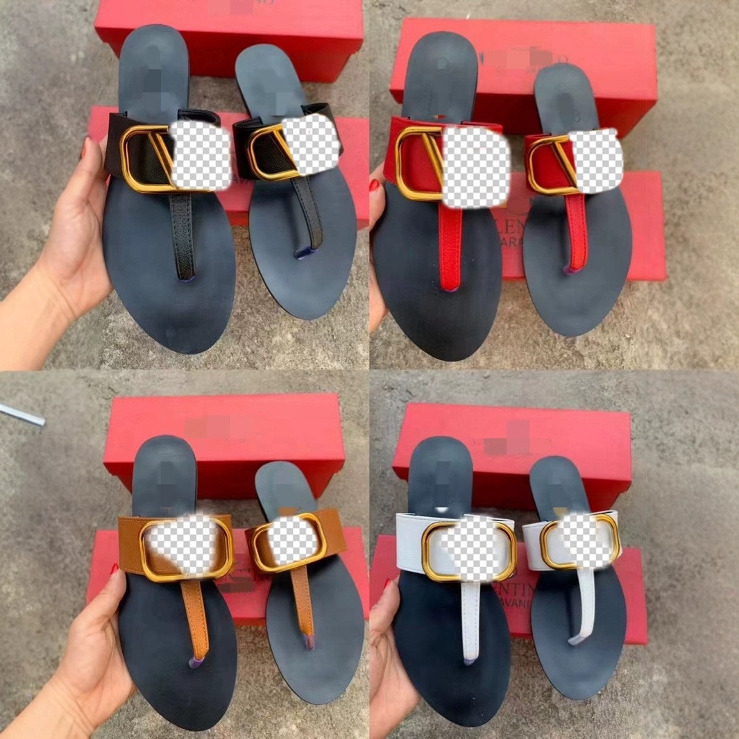 국경을 넘는 수출용 V 브랜드 패션 리치 패턴 헤링본 메탈 버클 슬리퍼 여성용 통기성 슬리퍼
