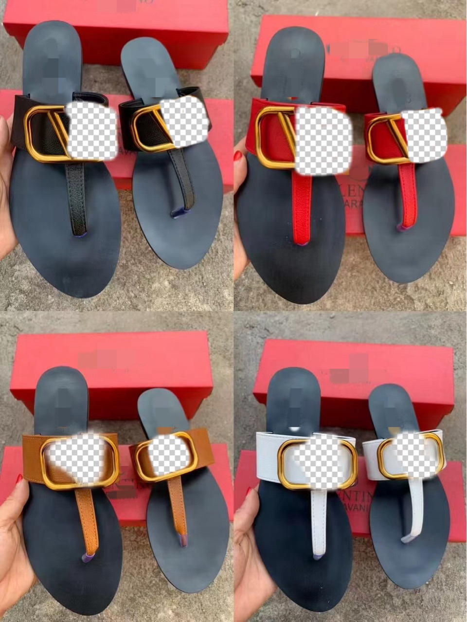 국경을 넘는 수출용 V 브랜드 패션 리치 패턴 헤링본 메탈 버클 슬리퍼 여성용 통기성 슬리퍼스토어 가기