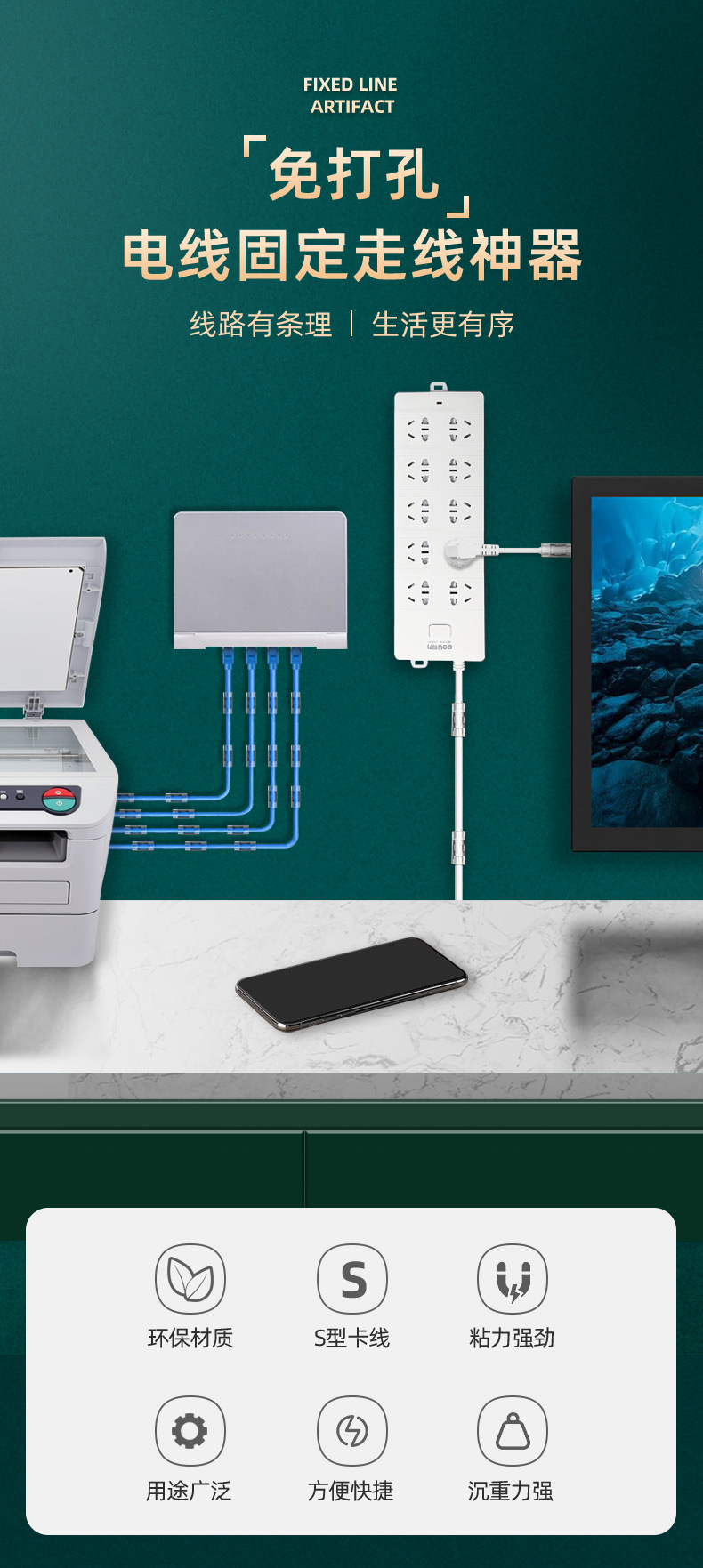 구멍이 없는 케이블 정리기, 벽 스티커, 흔적 없는 전선 보관함, 고정식 자체 접착식 케이블 클립, 버클, 네트워크 케이블 배선 도구