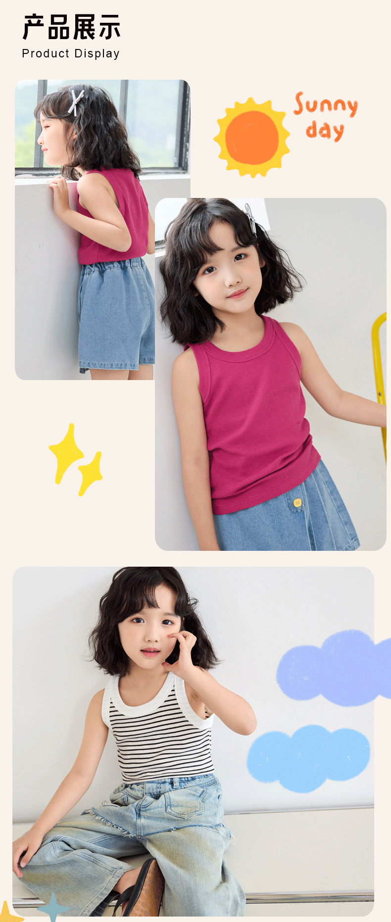 여름 소녀의 스레드 코튼 조끼 솔리드 컬러 한국 스타일 캐미솔 탑 얇은 어린이 민소매 티셔츠 바닥 셔츠