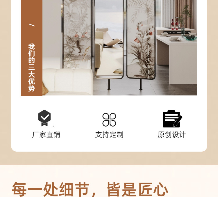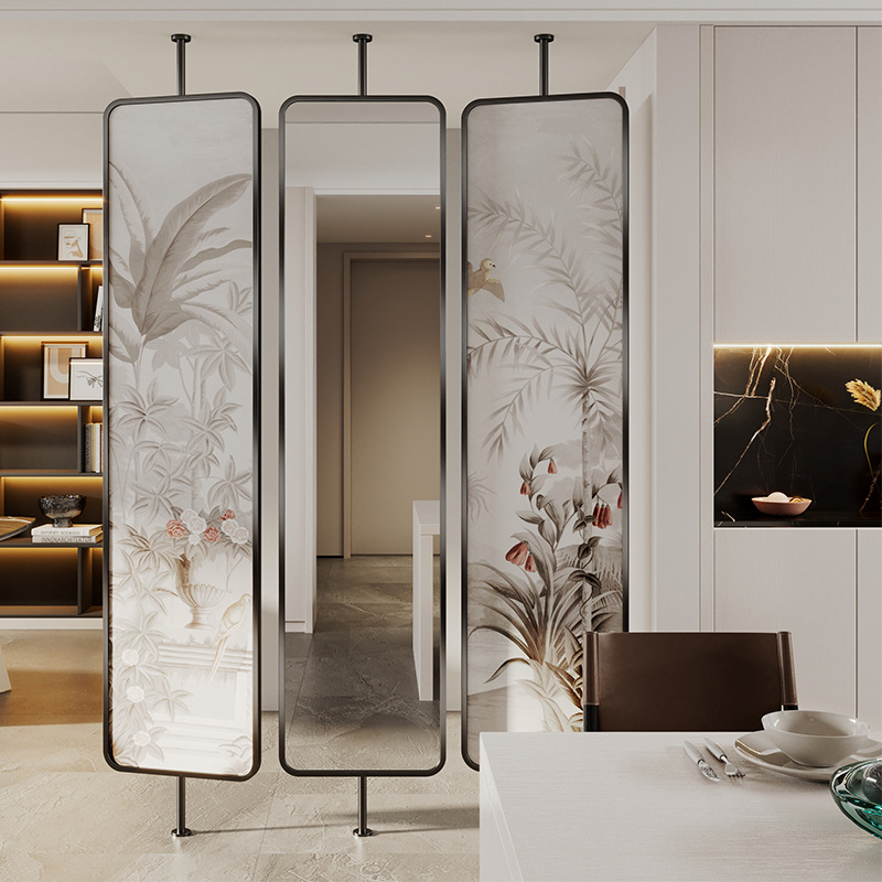 Baitie 프랑스 예술 유리 스크린 파티션 거실 새로운 스타일 홈 현대 간단한 입구 문 마감