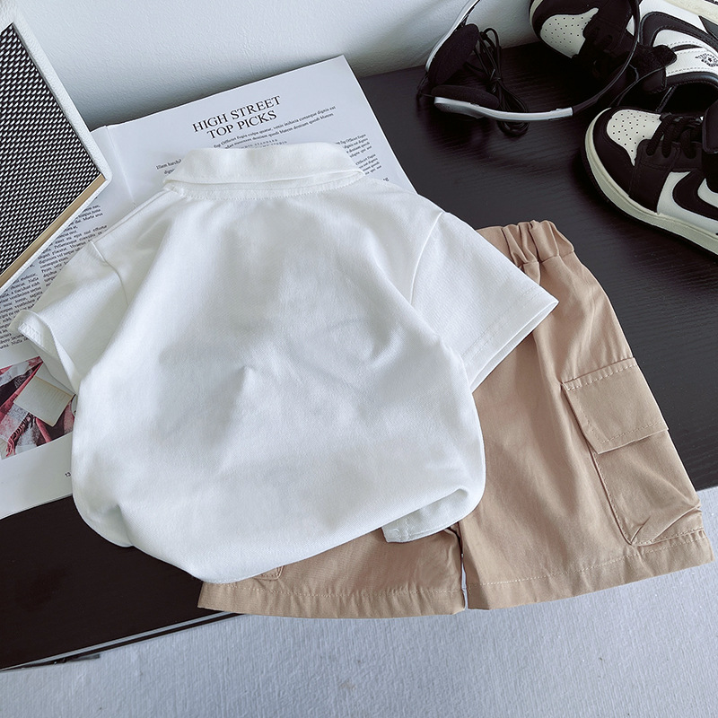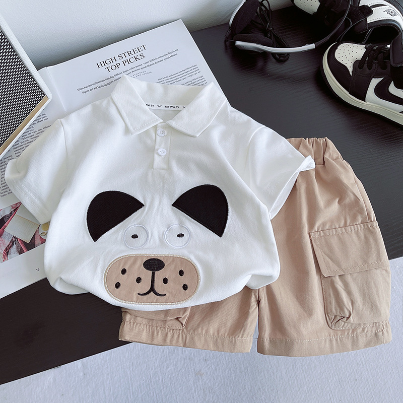 남자 아기 여름 만화 셔츠 세트 2025 새로운 어린이 캐주얼 여름 얇은 반팔 투피스 세트스토어 가기