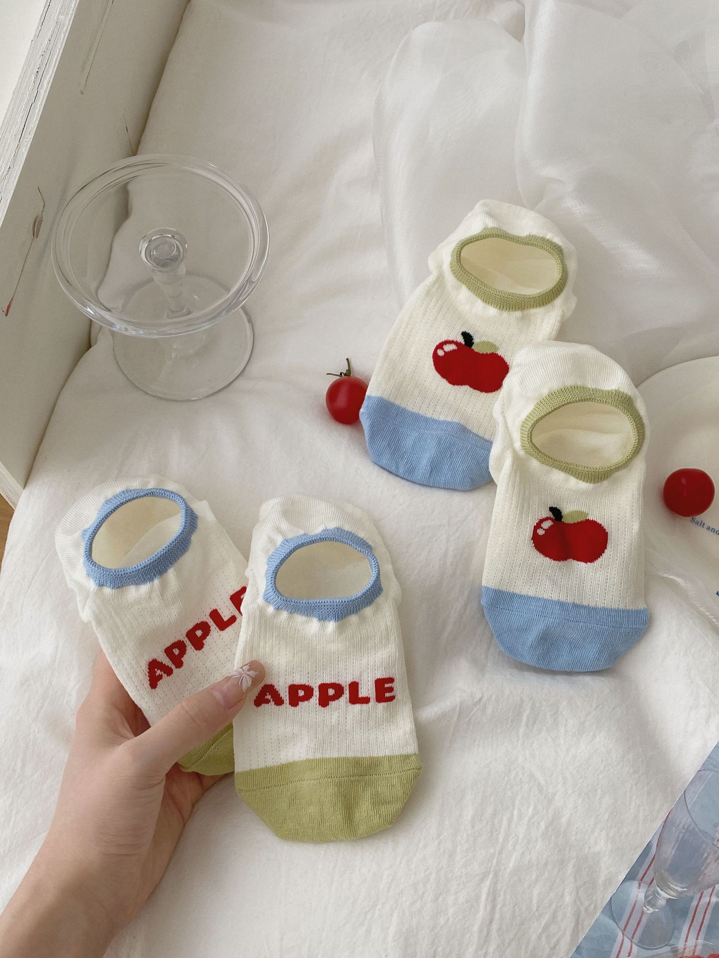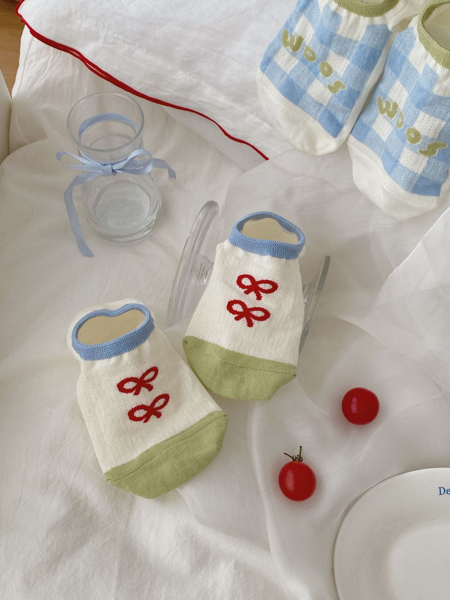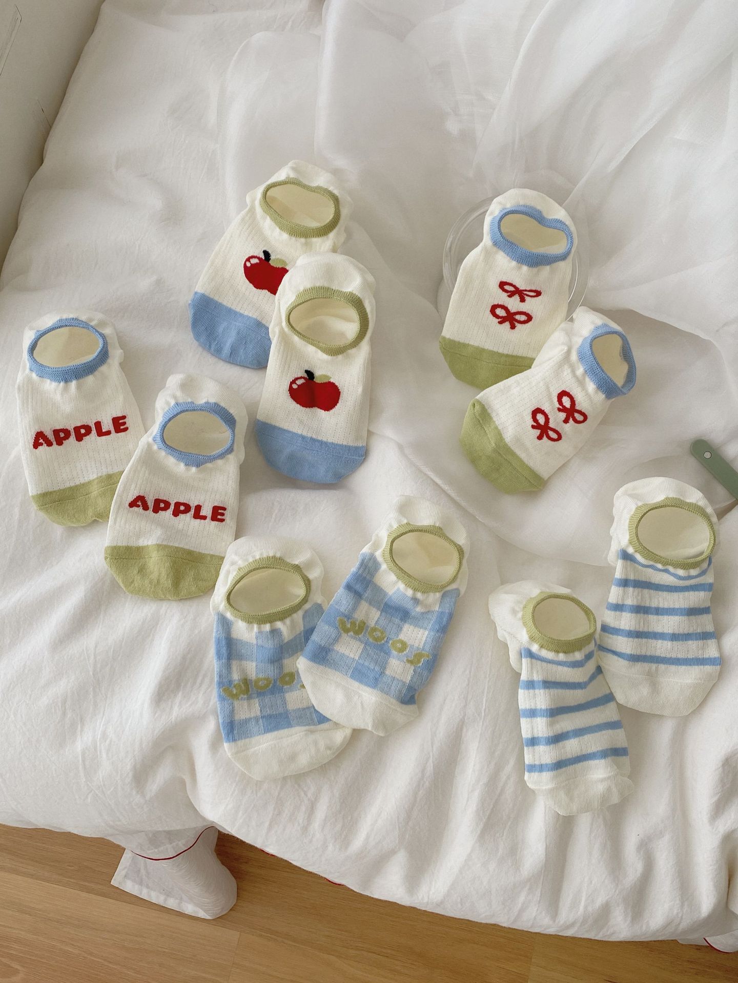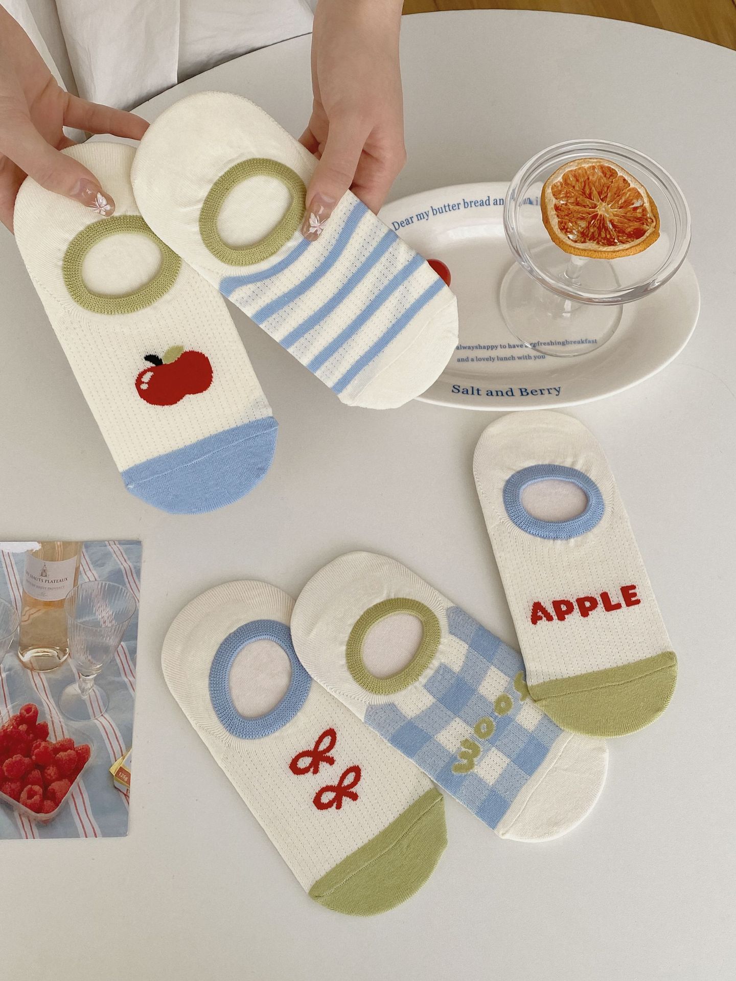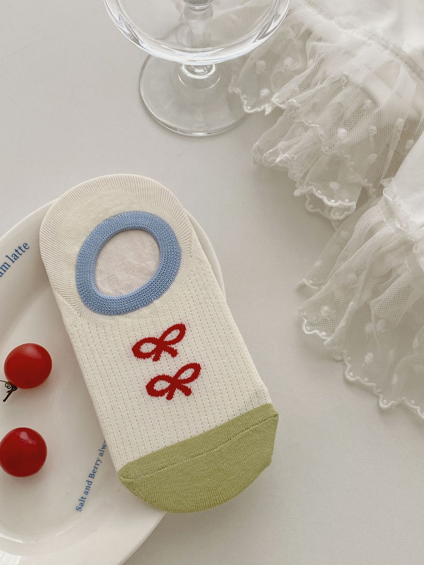 한국 스타일 애플 보트 양말 여름 얇은 통기성 메쉬 보이지 않는 양말 떨어지지 않는 줄무늬 나비 매듭 양말스토어 가기