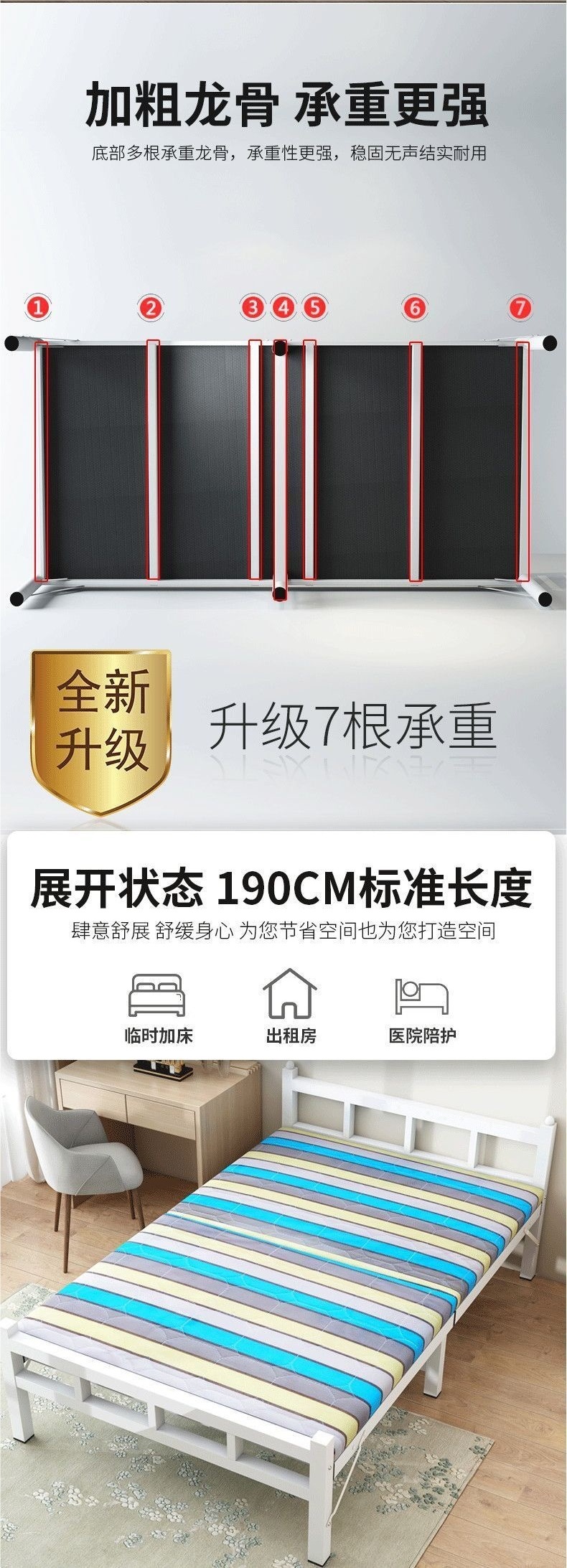 사무실 접이식 침대 싱글 침대 기숙사 소파 침대 성인 간이 낮잠 철제 침대 단단한 침대 임대실 1.0m