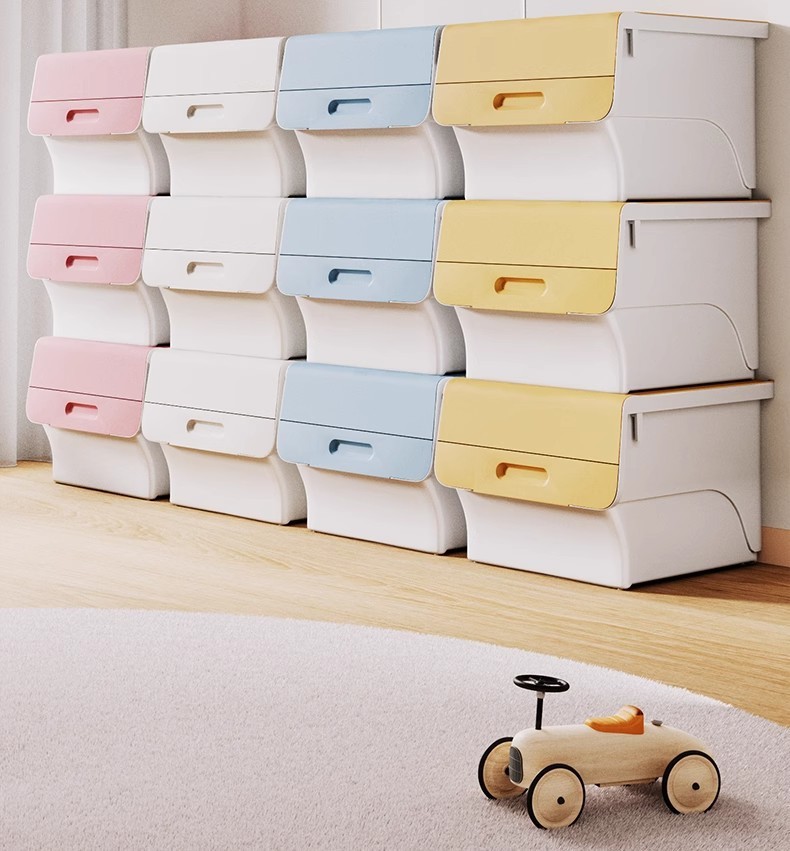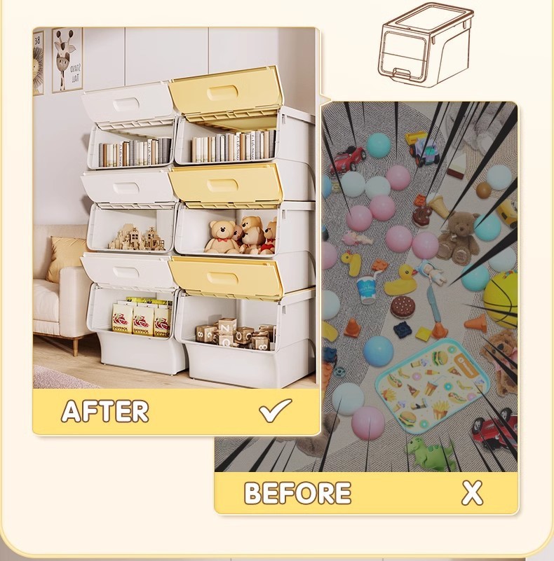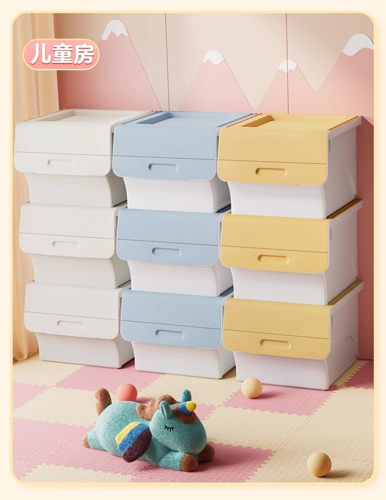 전면 개방형 어린이 보관 상자 가정용 보관 상자 스낵 다층 플립 커버 어린이 경사 장난감 보관 상자
