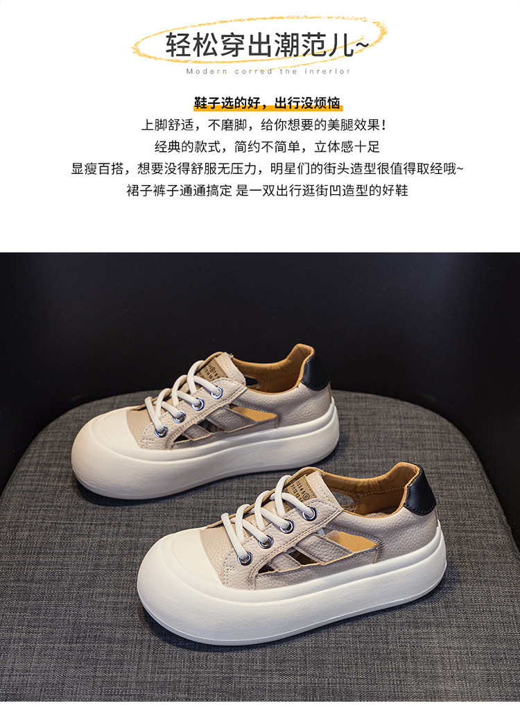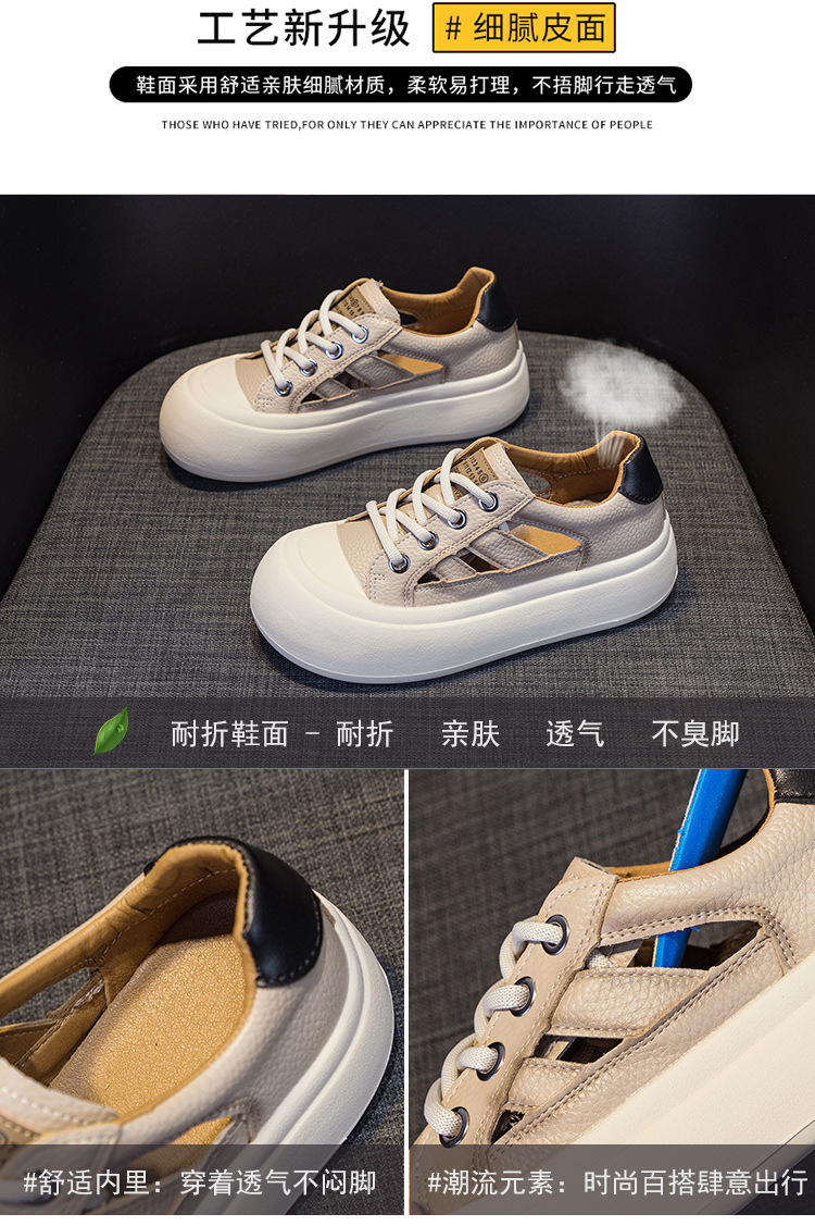 2023 새로운 여름 스타일 통기성 정품 가죽 중공 여성 신발 인터넷 연예인 부드러운 단독 다목적 신발 여성을위한 캐주얼 스타일 복고풍 운동화스토어 가기