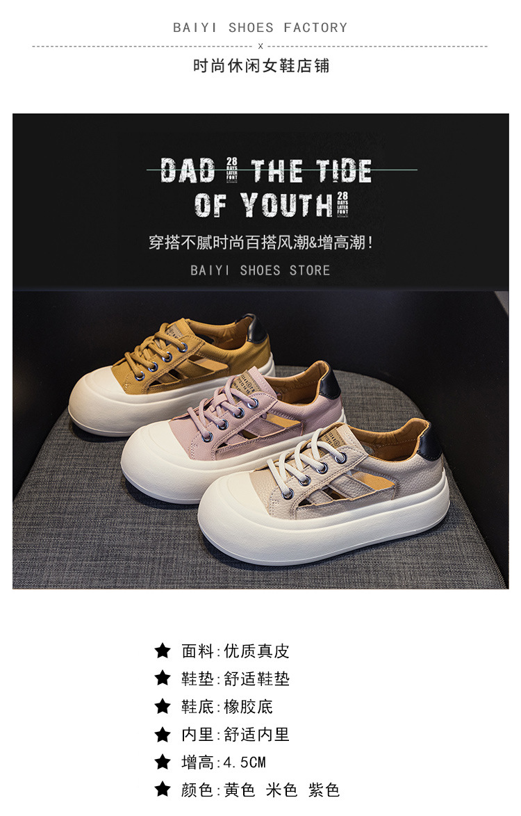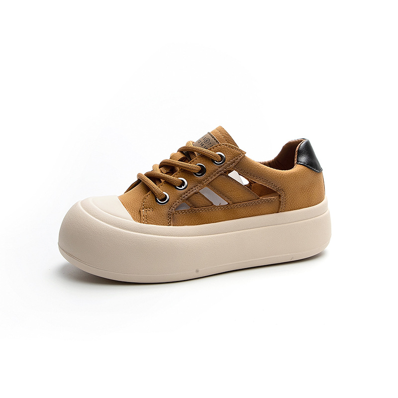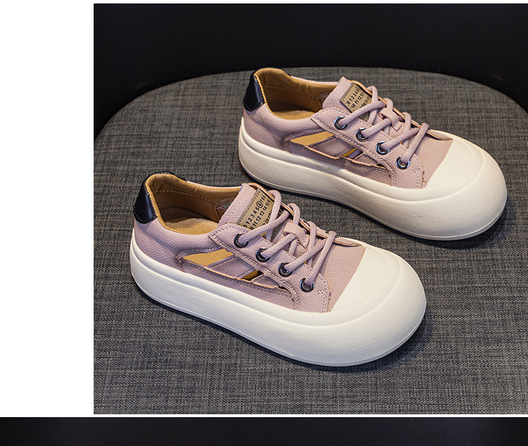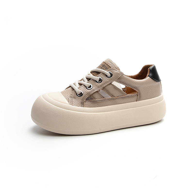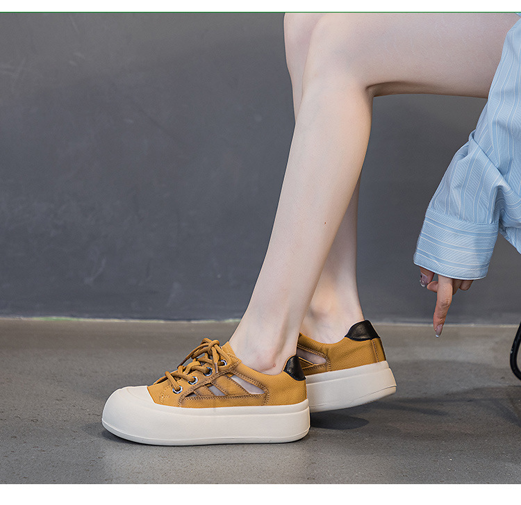 2023 새로운 여름 스타일 통기성 정품 가죽 중공 여성 신발 인터넷 연예인 부드러운 단독 다목적 신발 여성을위한 캐주얼 스타일 복고풍 운동화