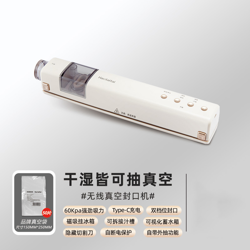 • [신형/화이트] 무선 진공 밀봉기 + 브랜드 진공백 100개