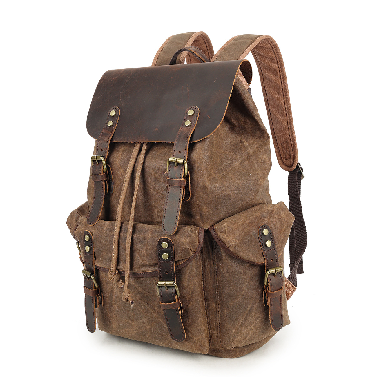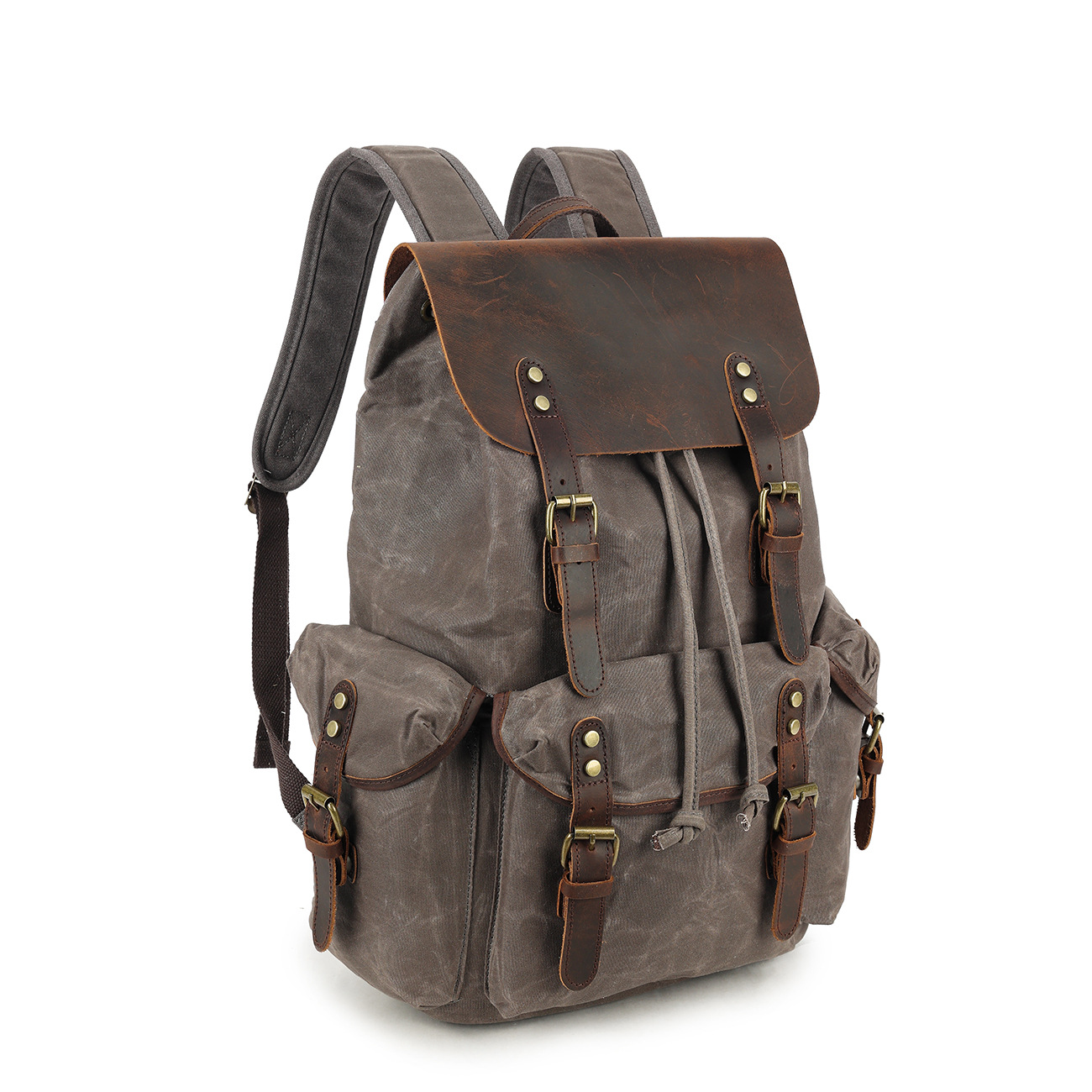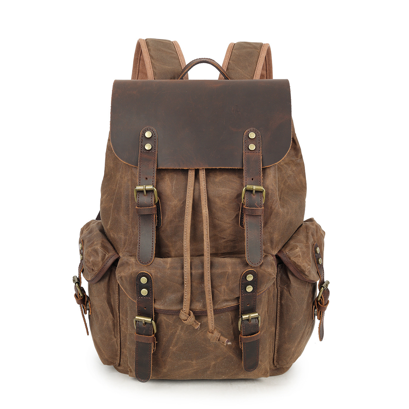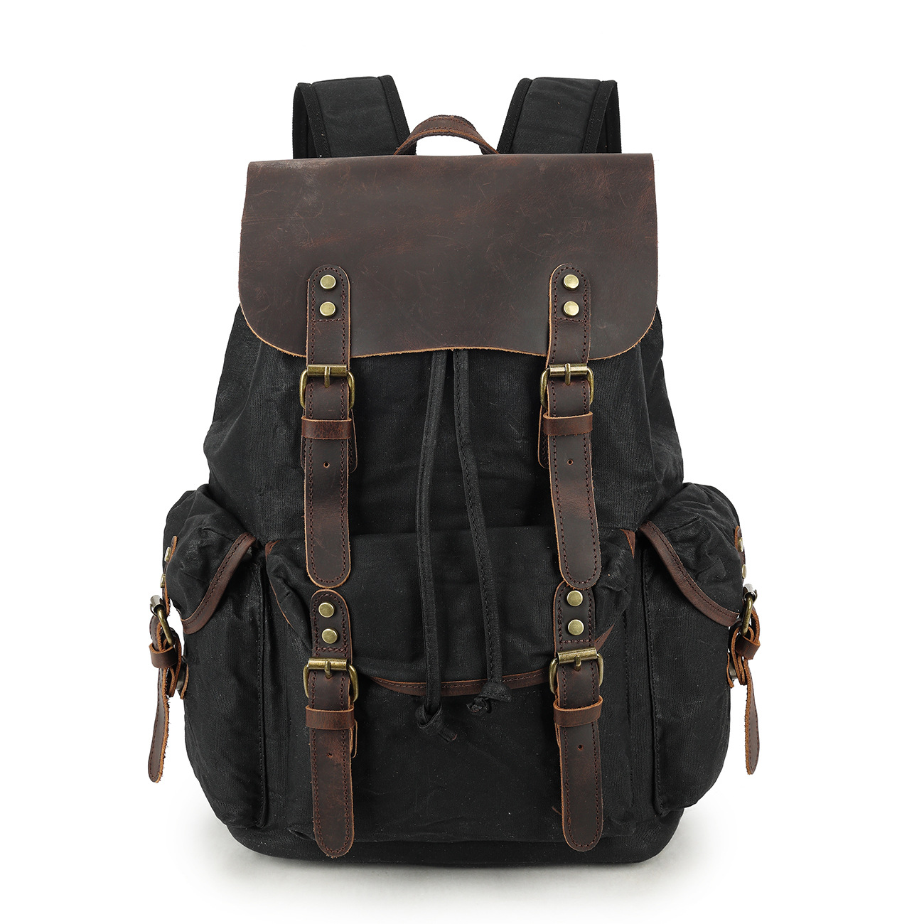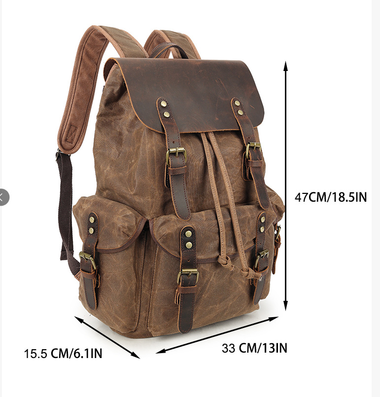 레트로 페퍼 소금 미친 말 가죽 배낭 여행 등산 가방 야외 대용량 오일 왁스 캔버스 가방 유행 학교 가방