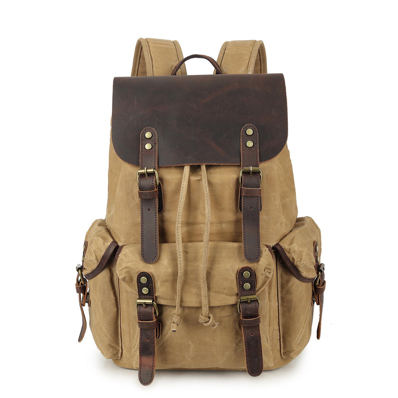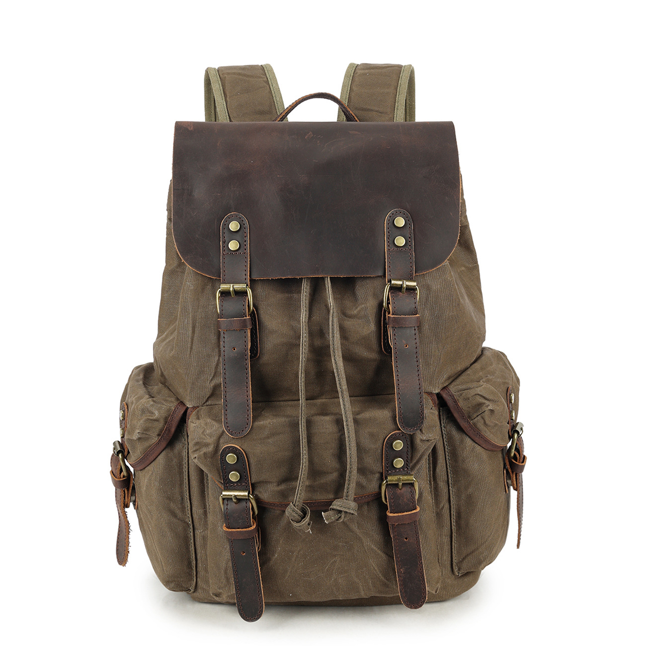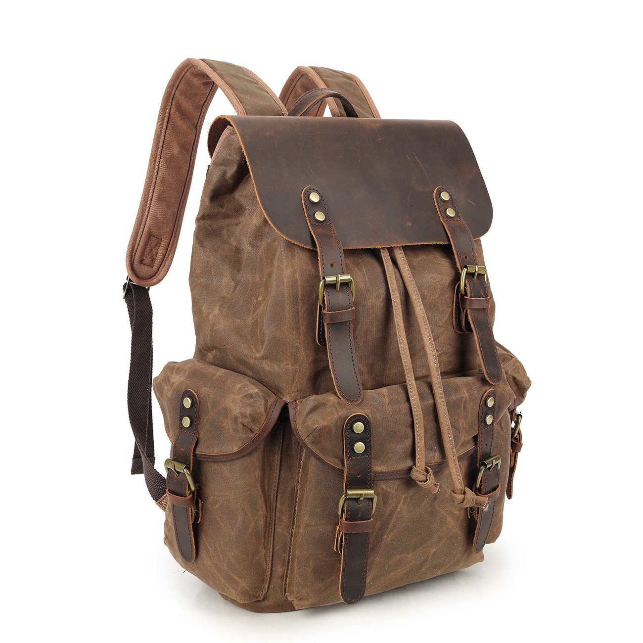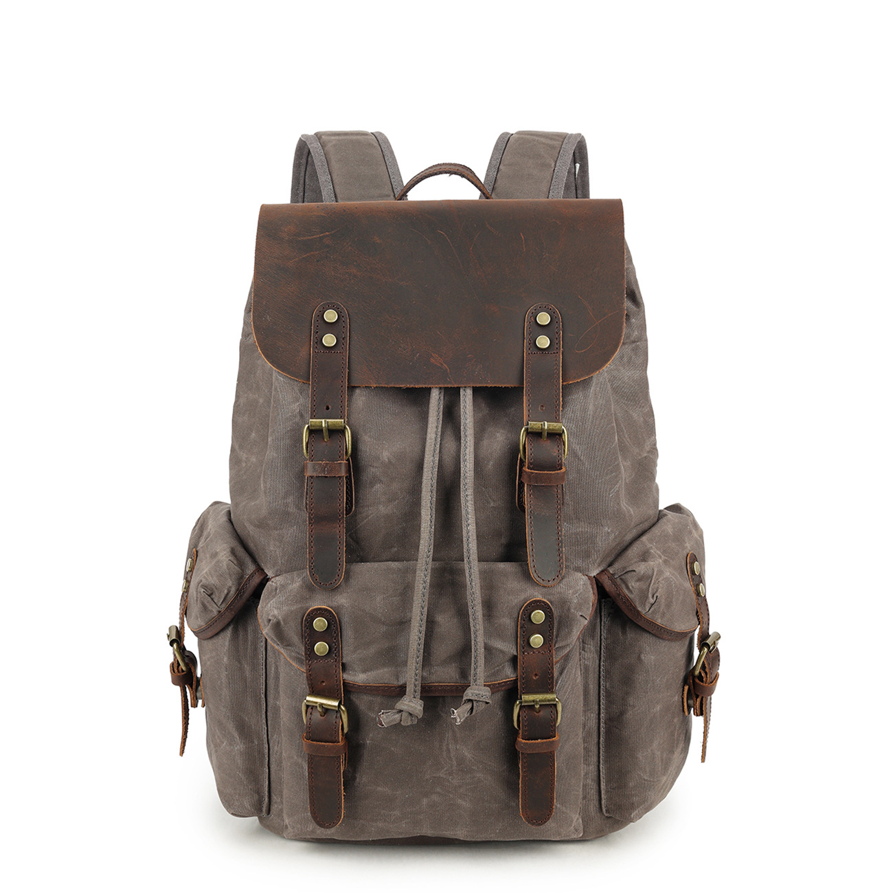 레트로 페퍼 소금 미친 말 가죽 배낭 여행 등산 가방 야외 대용량 오일 왁스 캔버스 가방 유행 학교 가방