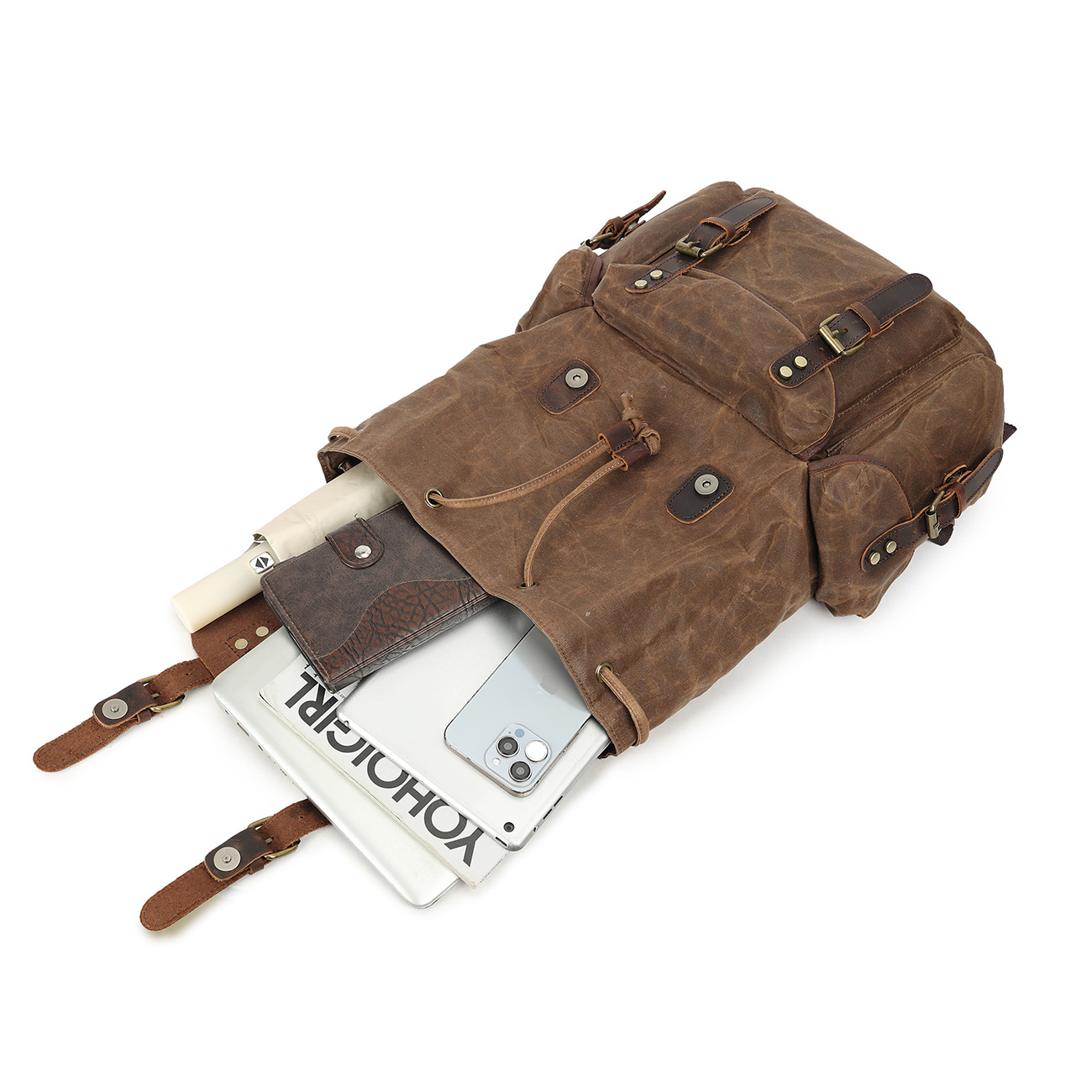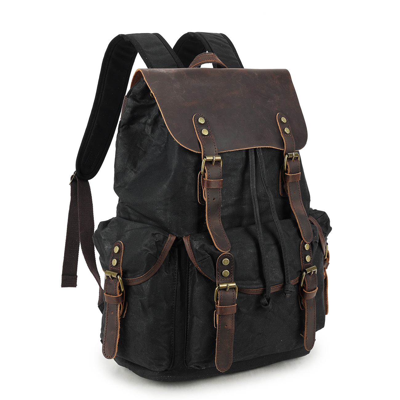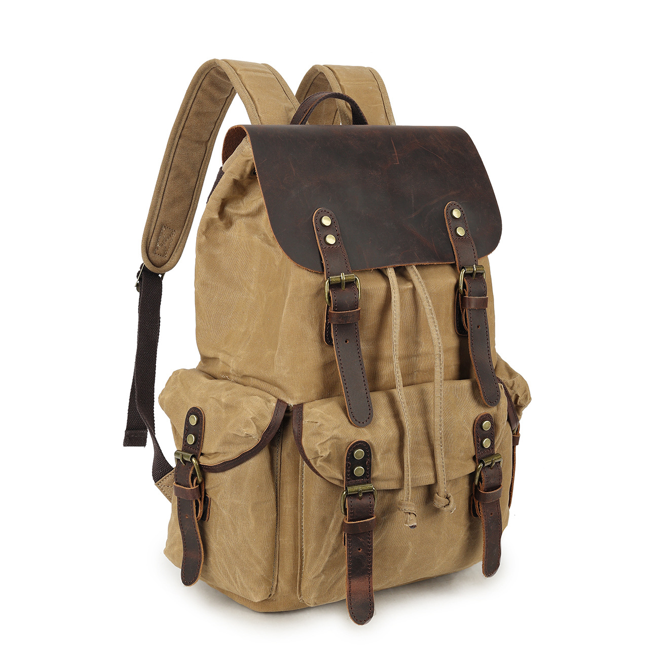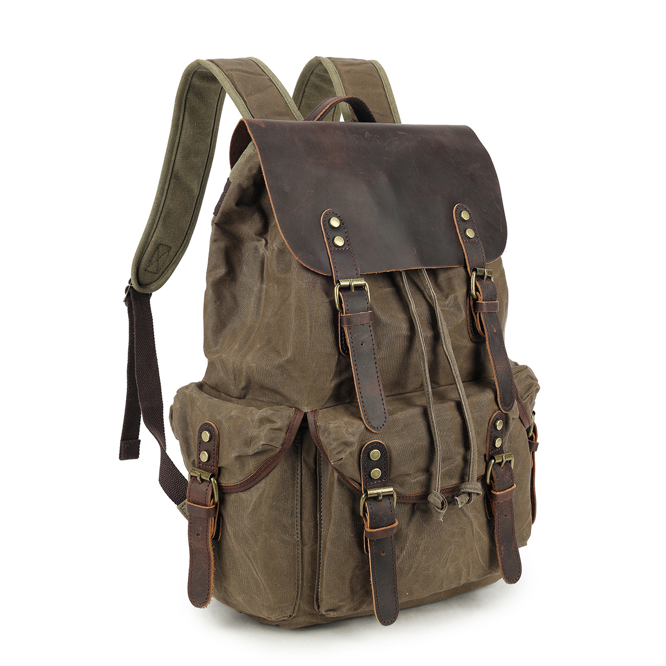 레트로 페퍼 소금 미친 말 가죽 배낭 여행 등산 가방 야외 대용량 오일 왁스 캔버스 가방 유행 학교 가방