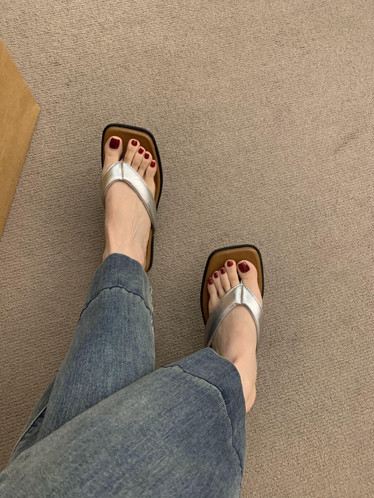 여성용 여름 아우터용 소프트솔 샌들, 프렌치 이브닝 스타일 실버 슬리퍼, 여성용 두꺼운 밑창 슬리퍼 샌들, 비치 슈즈스토어 가기