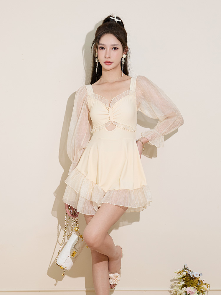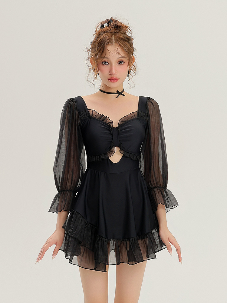 여성용 플랫앵글 원피스 수영복 2025 신형 보수적인 배 커버 슬리밍 플러스 사이즈 살찐 mm 온천 수영복