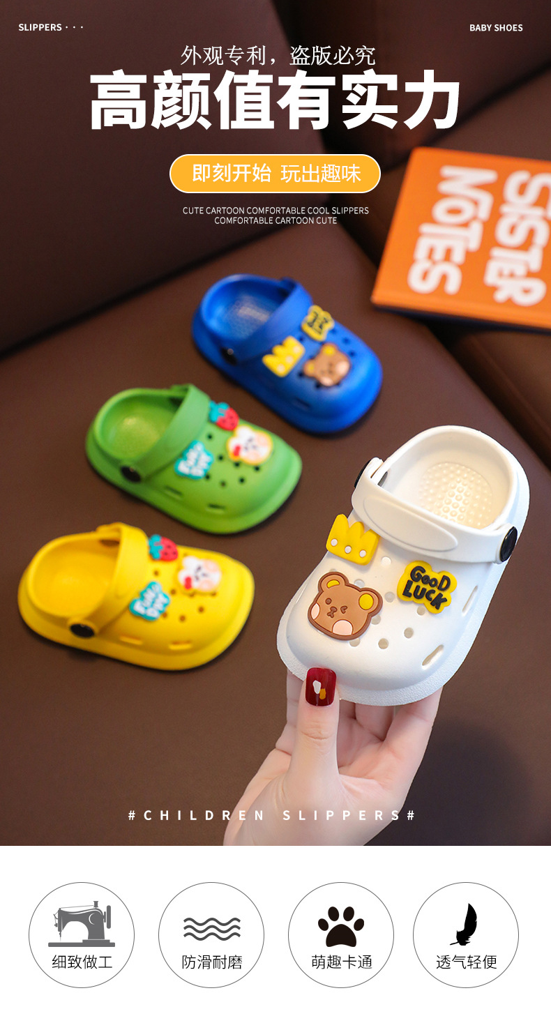 [미끄럼 방지 부드러운 바닥] 남아 및 여아용 어린이 나막신, 중대형 어린이용 비치 슈즈, 발가락 충돌 방지 어린이 샌들 및 슬리퍼