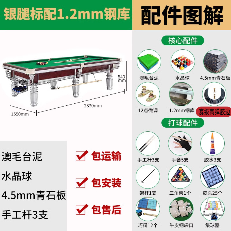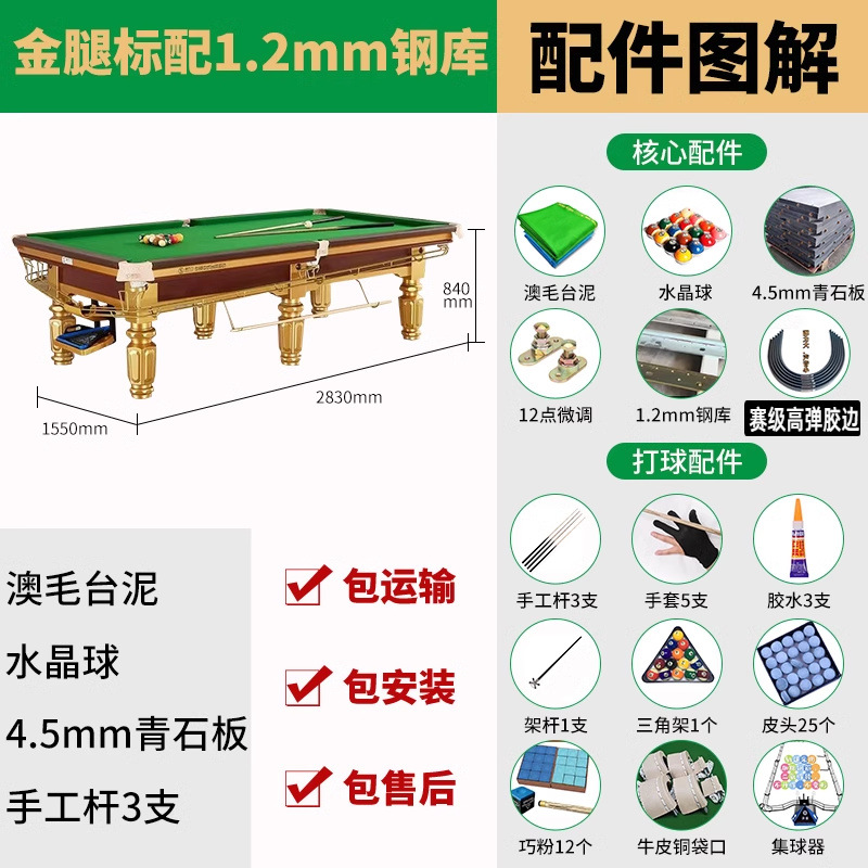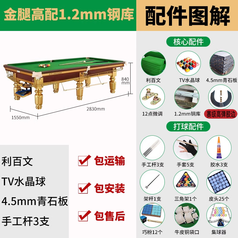 표준 당구대 중국 스타일 블랙 8 성인 가정용 당구대 하이 엔드 스틸 아메리칸 당구 상업용 당구장스토어 가기