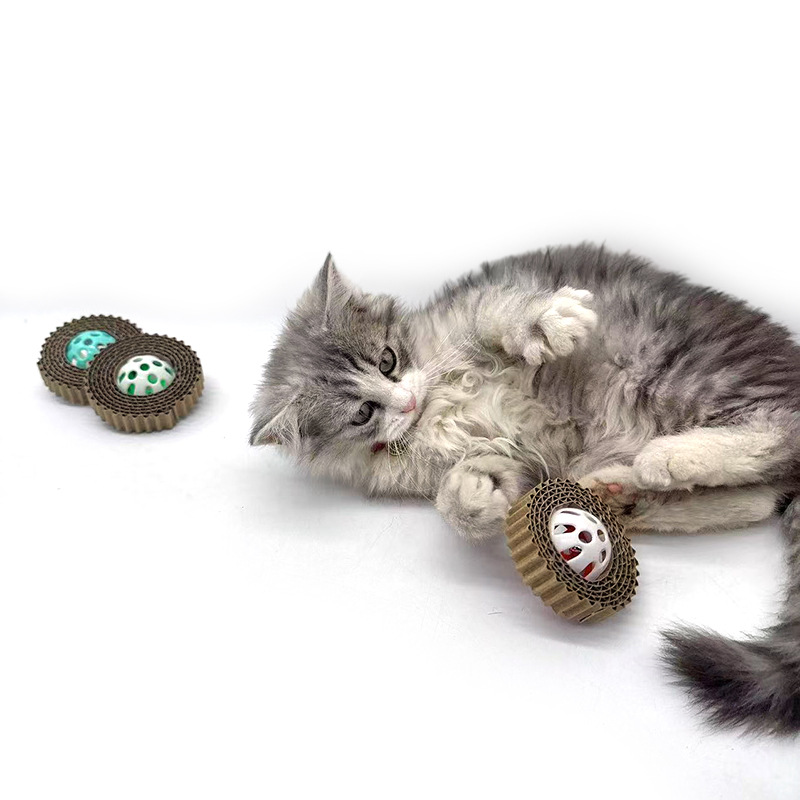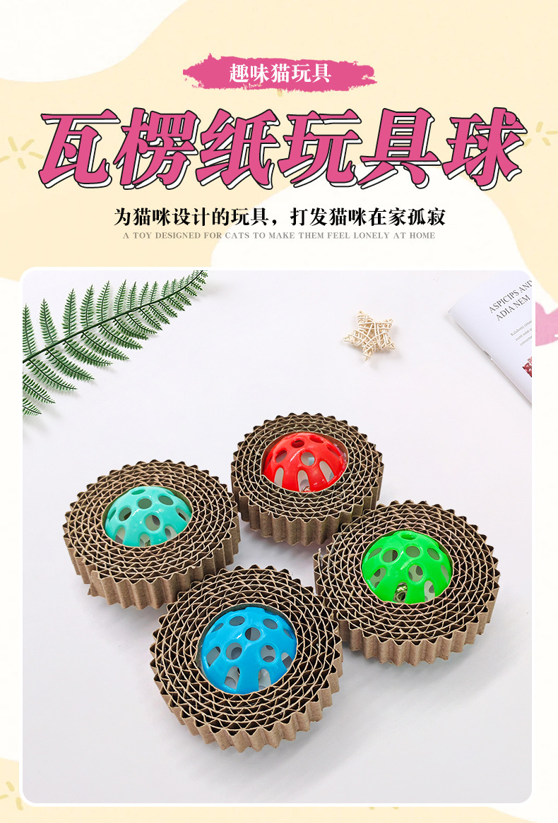 국경 간 배송 가능한 골판지 고양이 장난감 플라스틱 공 4색 내구성 있는 고양이 장난감 공 벨벨 도매 애완동물 장난감 Y스토어 가기