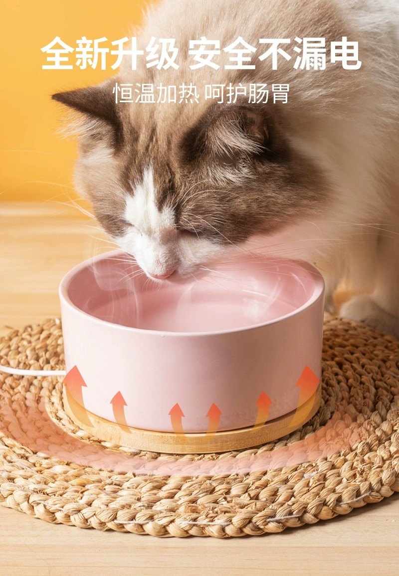 고양이 겨울 항온 가열 세라믹 그릇 워터 디스펜서 식수 개 온수기 위장 식품 그릇 애완 동물 물 그릇