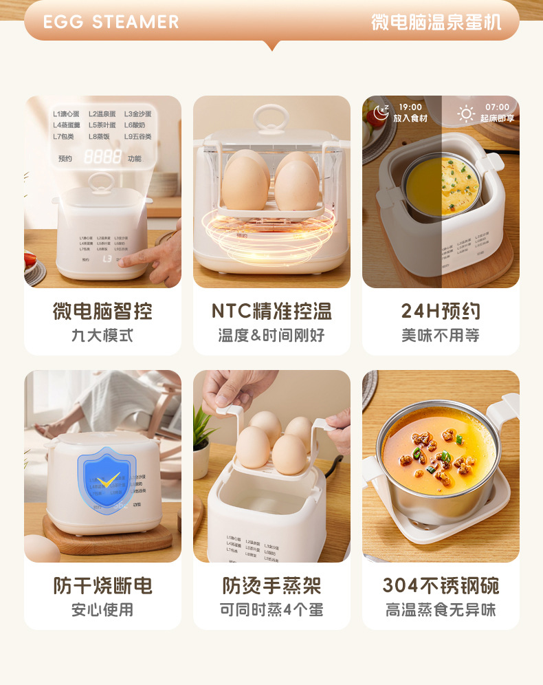 자동 계란 밥솥 새로운 다기능 지능형 예약 모델 완전 자동 전원 끄기 가정용 아침 식사 소형 계란찜기스토어 가기
