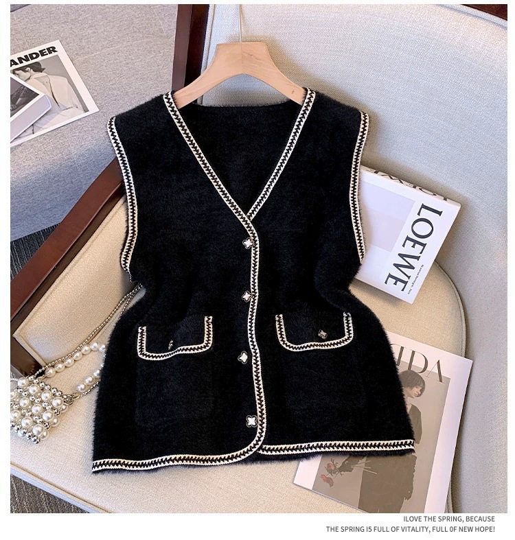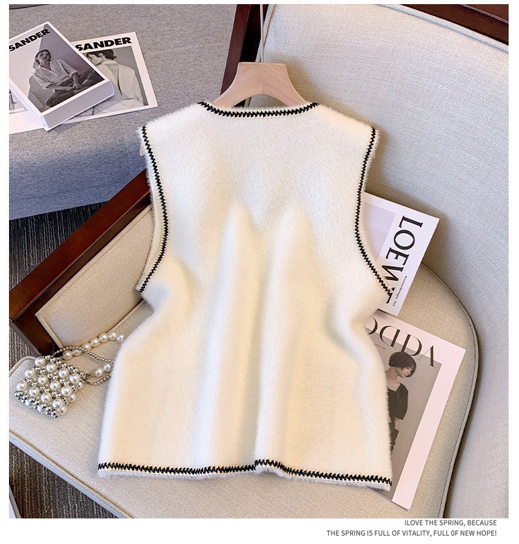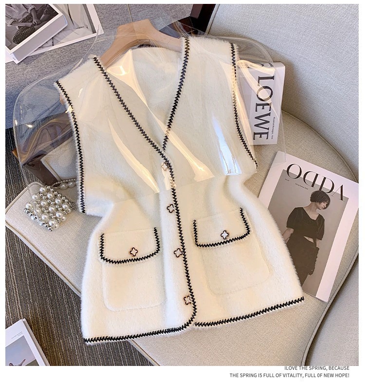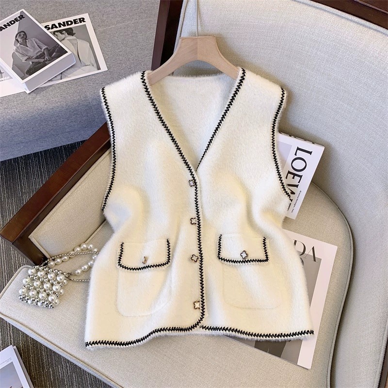 2025 새로운 기질 모조 밍크 모피 조끼 가을 여성 한국 스타일 진주 버튼 겉옷 조끼 스웨터 다용도 조끼스토어 가기