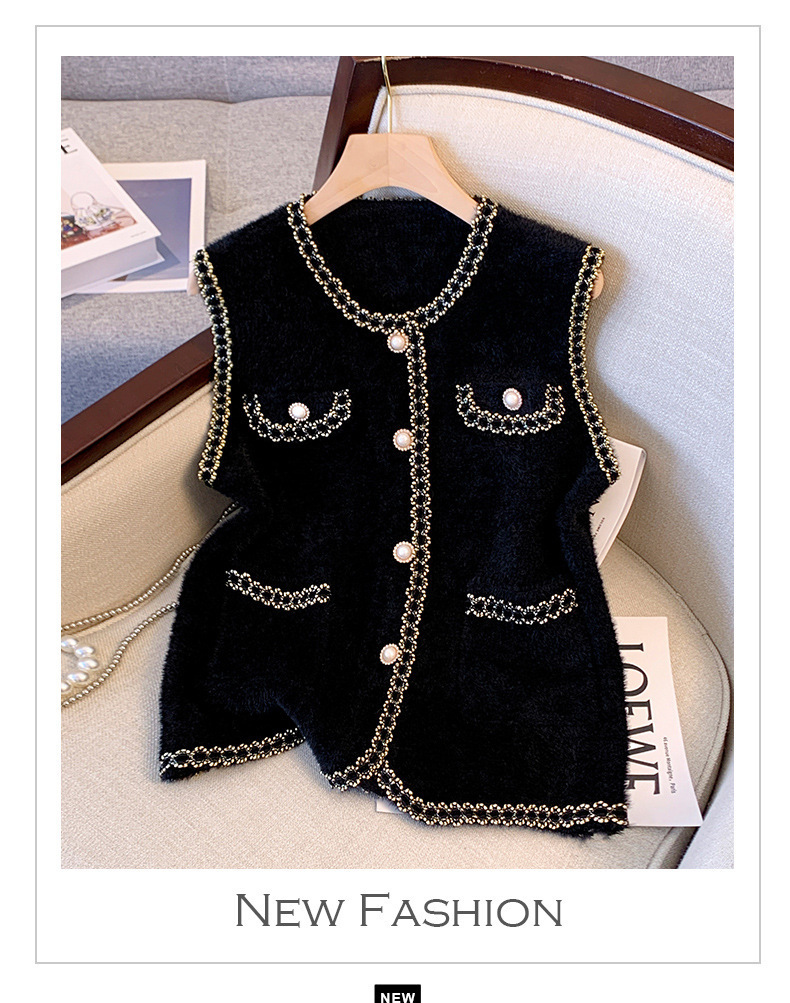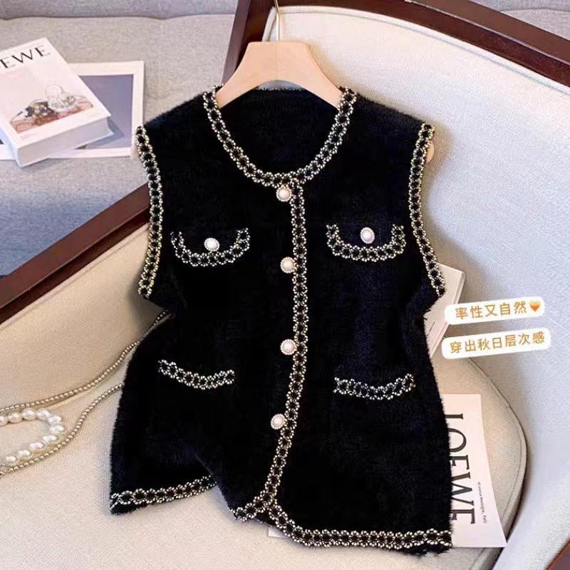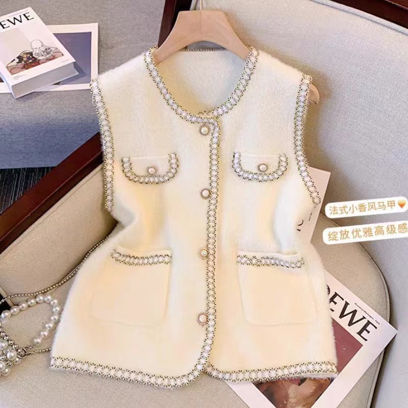 2025 새로운 기질 모조 밍크 모피 조끼 가을 여성 한국 스타일 진주 버튼 겉옷 조끼 스웨터 다용도 조끼