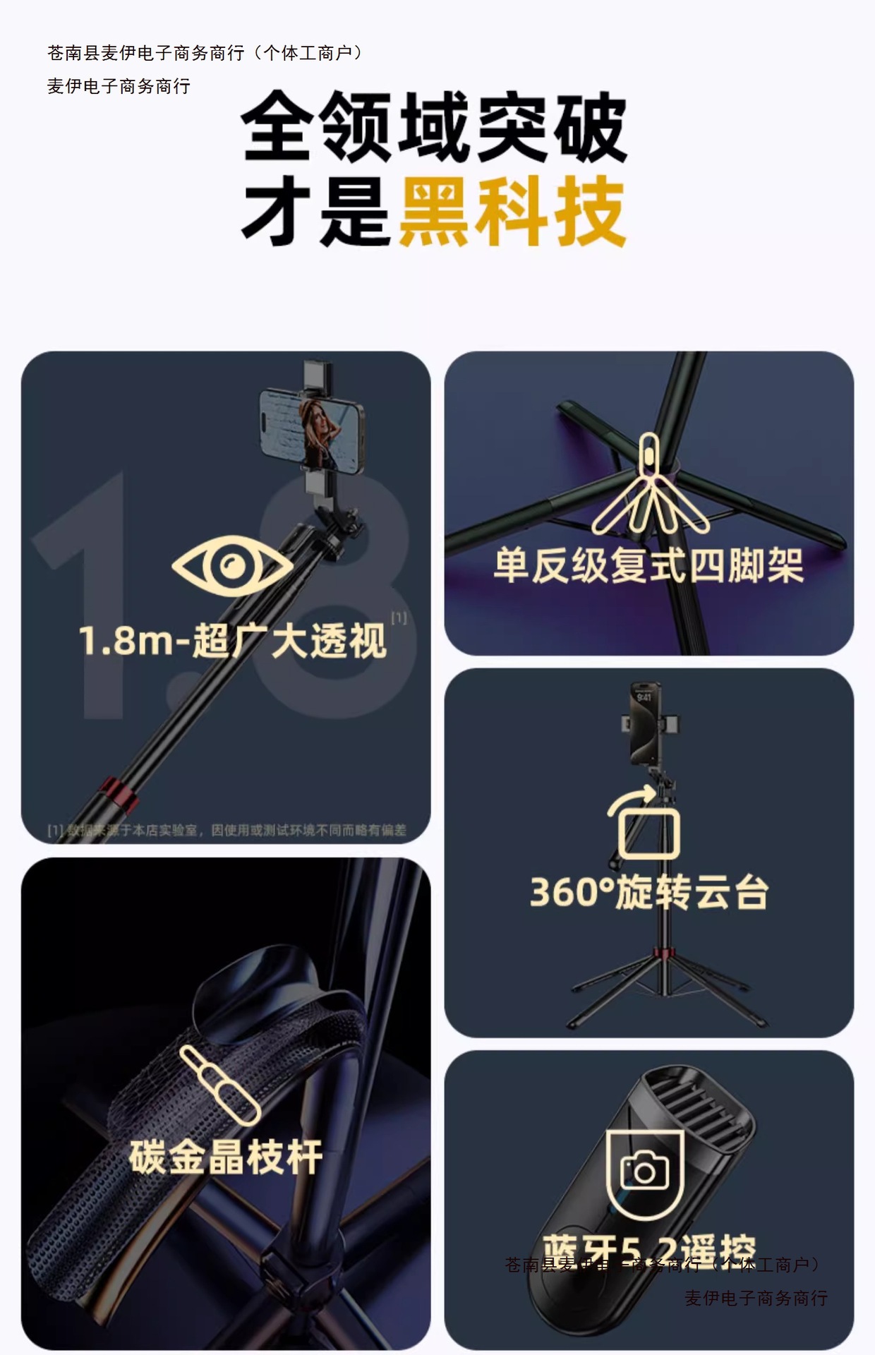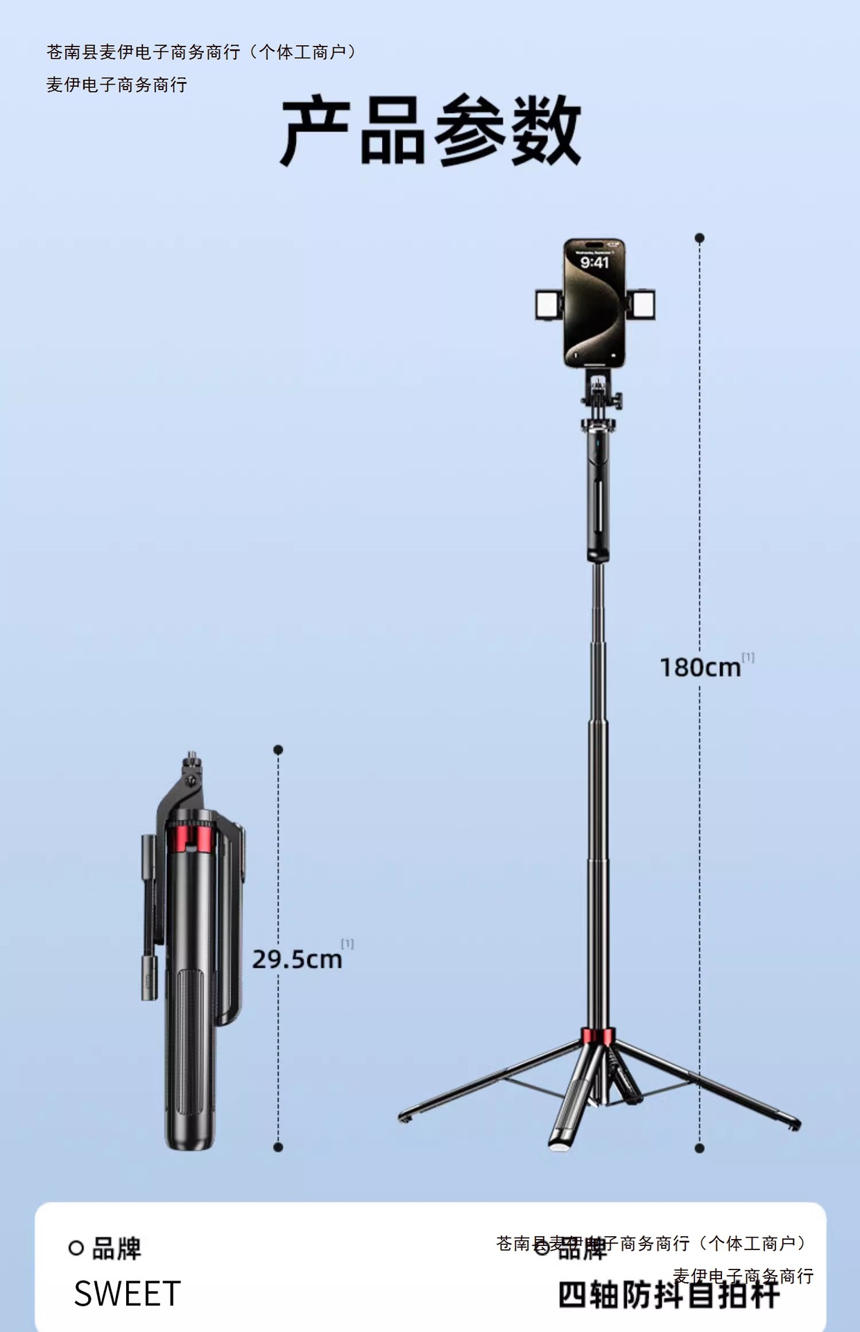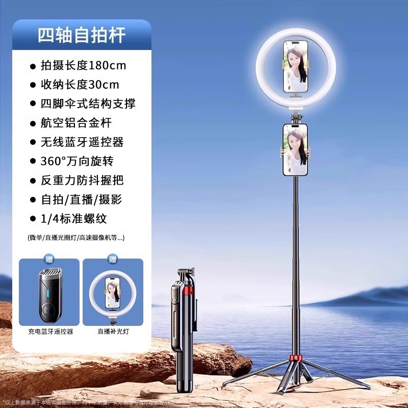 • 1.8m [4축 합금강] 듀얼 뷰티 램프 + 충전 블루투스 리모콘.
