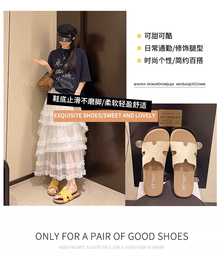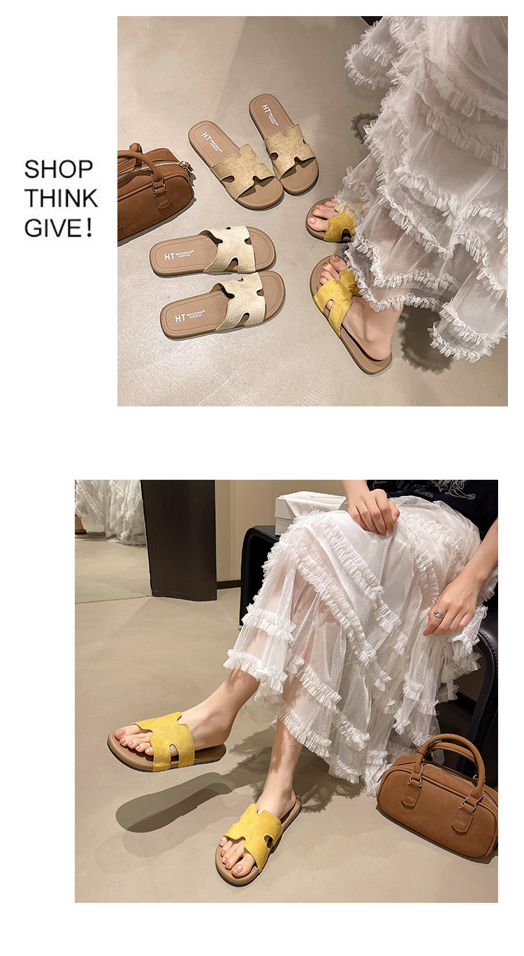 여성용 프렌치 오픈 토 슬리퍼 2025 여름 신작 리조트 스타일 플랫 미끄럼 방지 해변 샌들스토어 가기