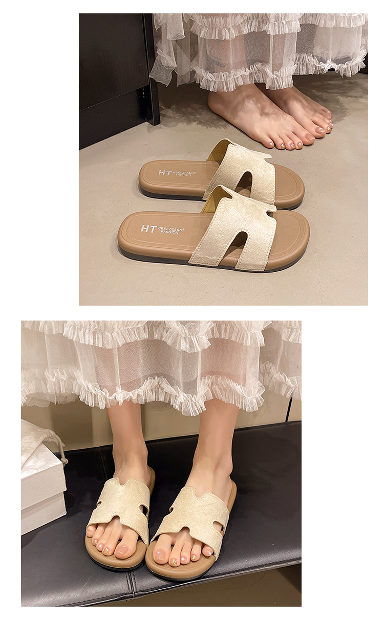여성용 프렌치 오픈 토 슬리퍼 2025 여름 신작 리조트 스타일 플랫 미끄럼 방지 해변 샌들