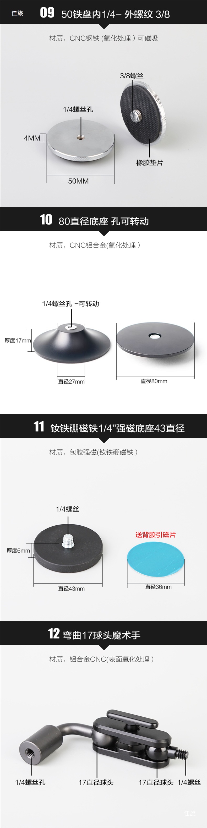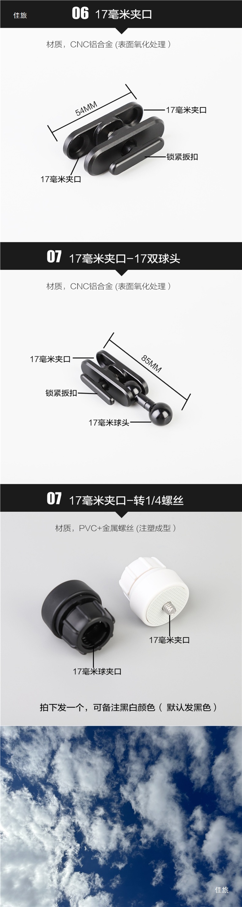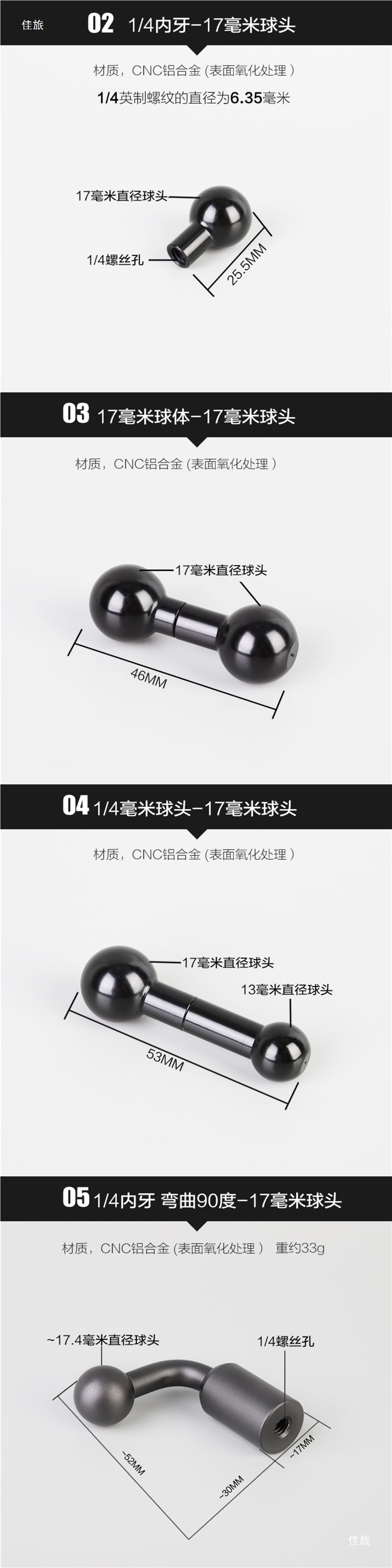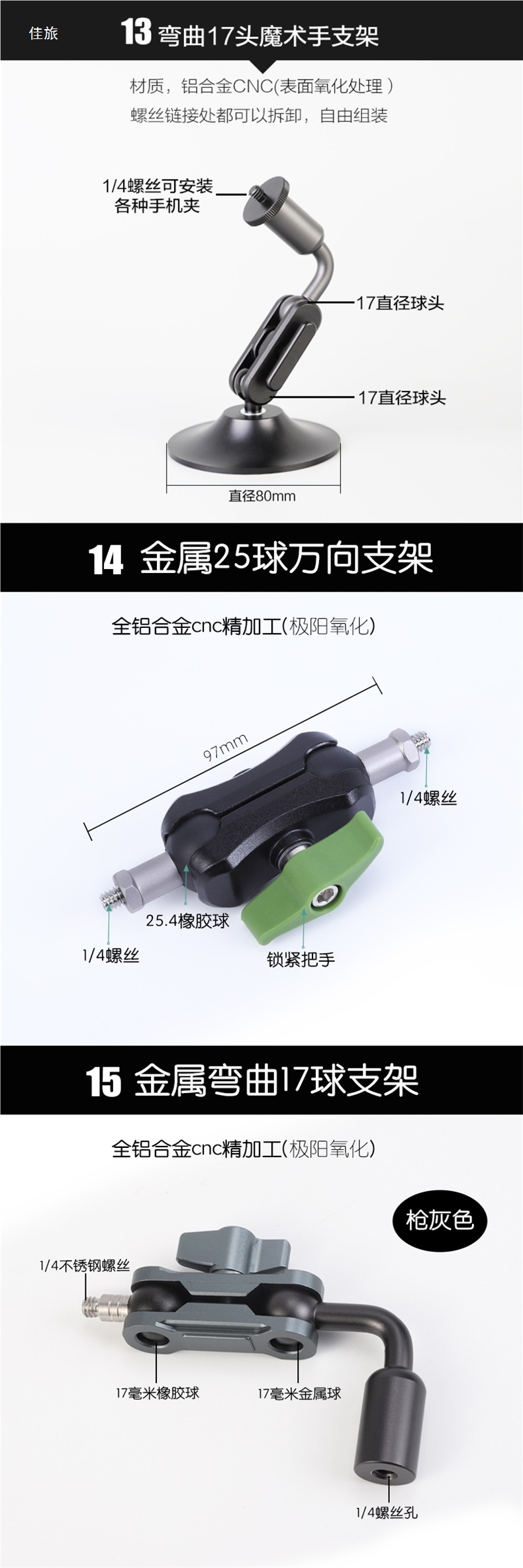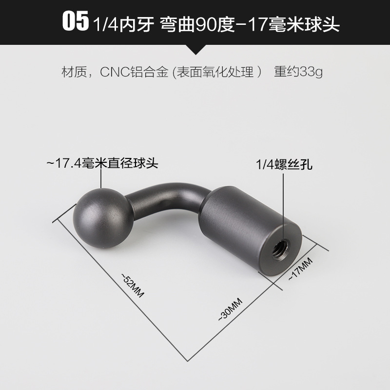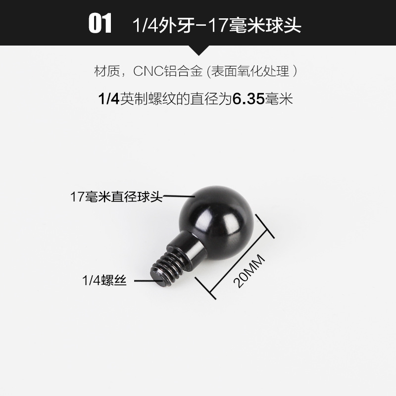 17 직경 볼 자동차 휴대 전화 클립 알루미늄 합금 범용 휴대 전화 태블릿 커넥터 1/4 인터페이스 삼각대 확장 부품
