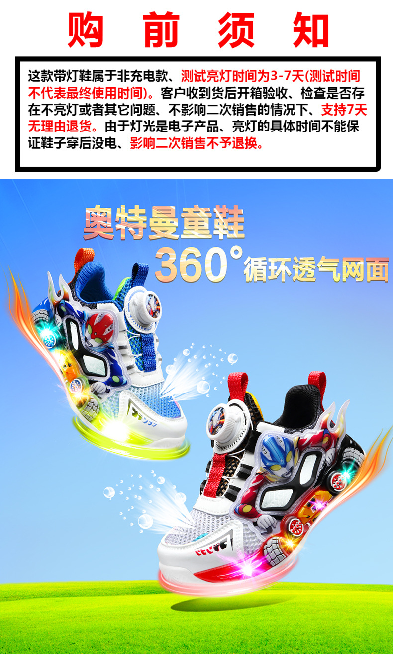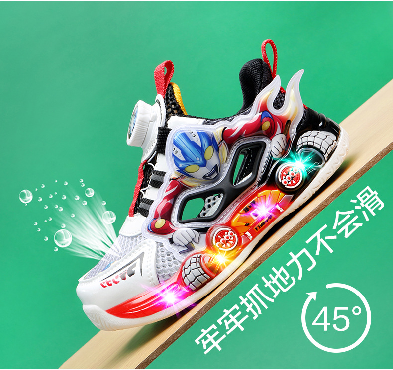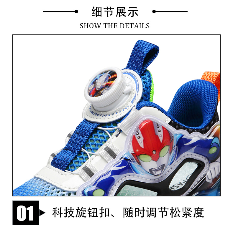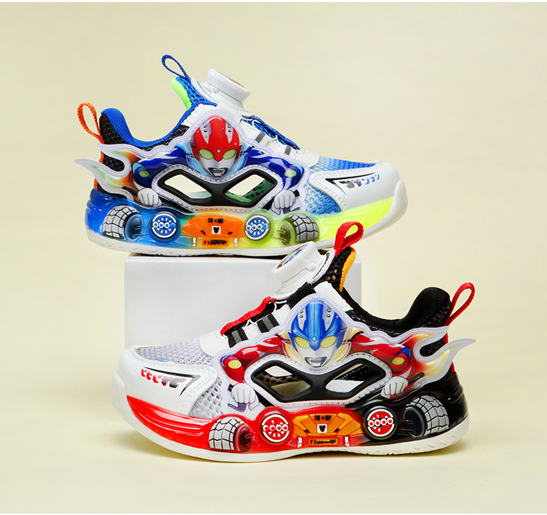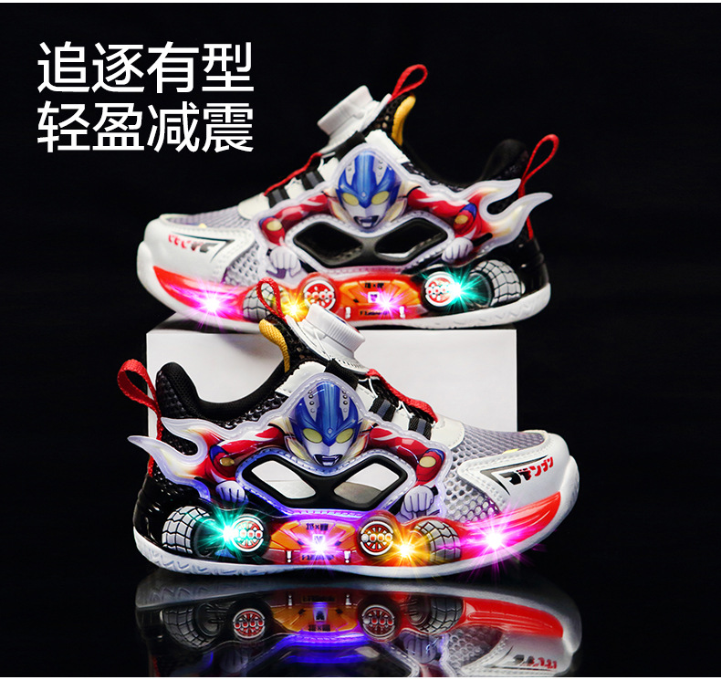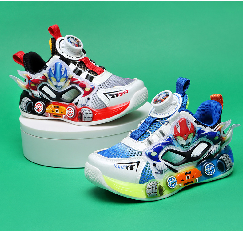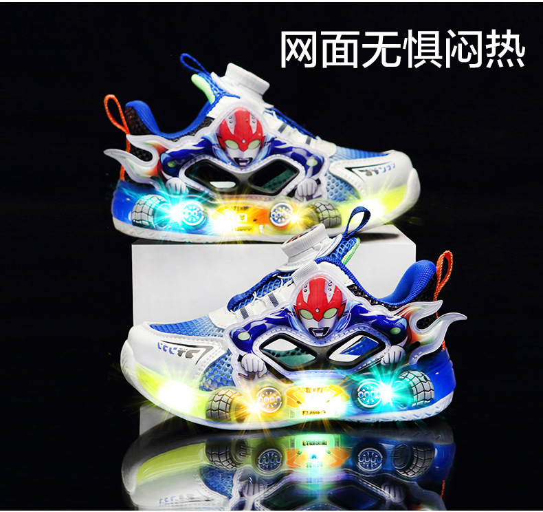 울트라 맨 소년 빛나는 신발 2025 봄과 가을 새로운 회전 버튼 캐주얼 스포츠 신발 어린이 경량 운동화스토어 가기