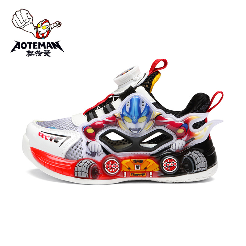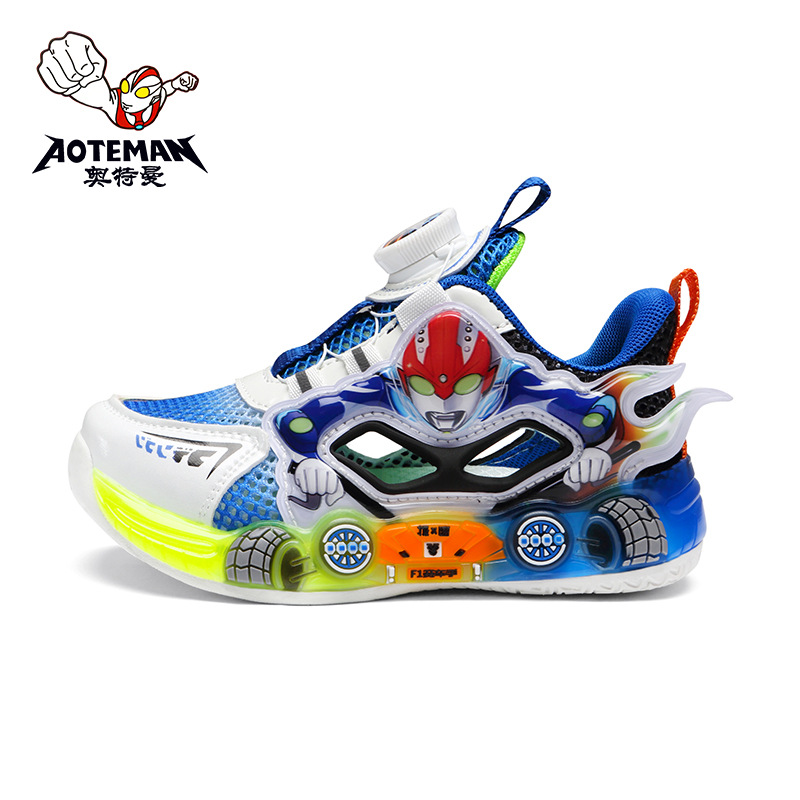 울트라 맨 소년 빛나는 신발 2025 봄과 가을 새로운 회전 버튼 캐주얼 스포츠 신발 어린이 경량 운동화