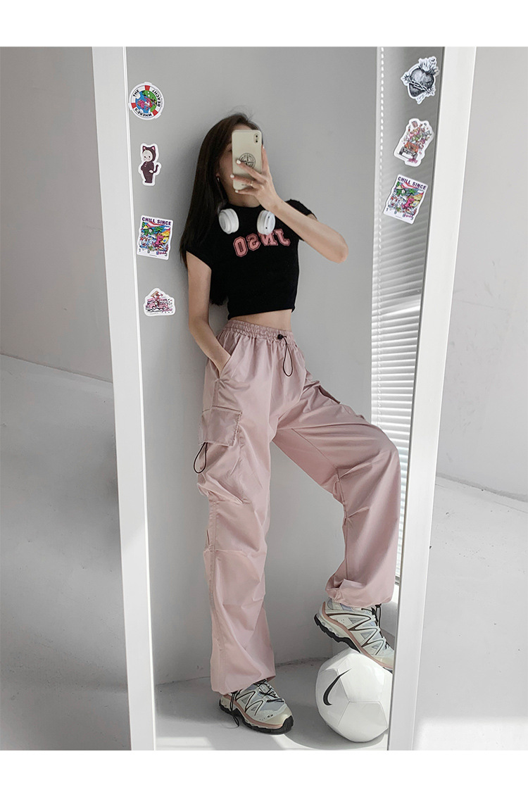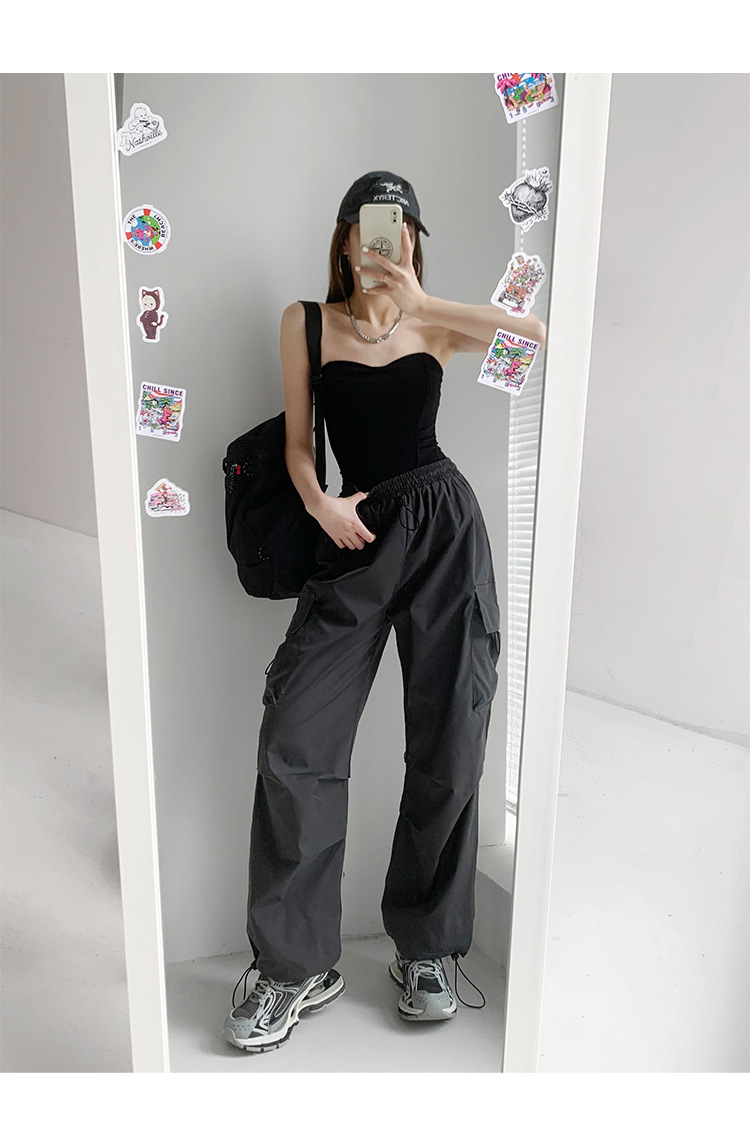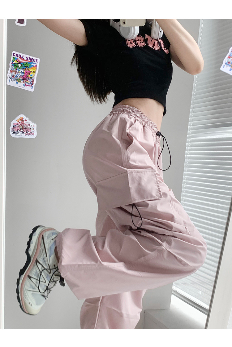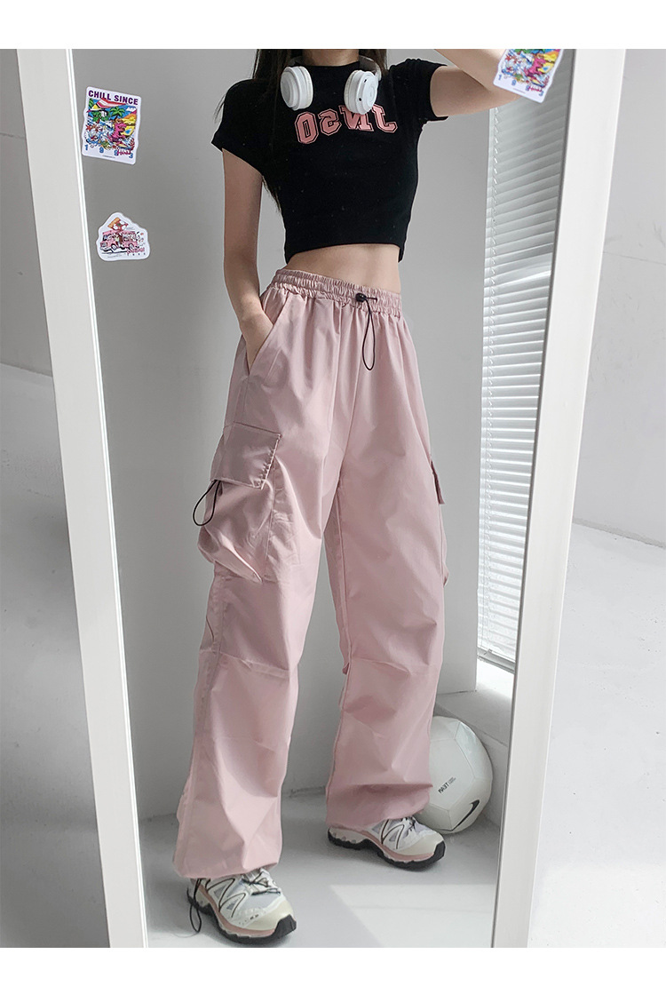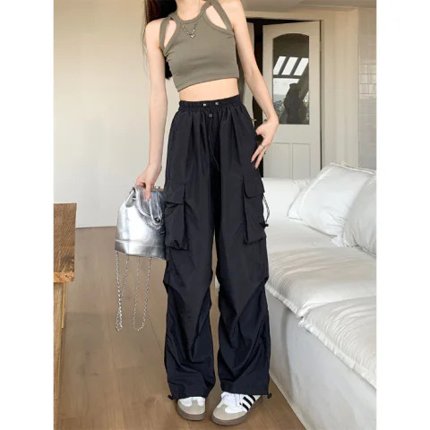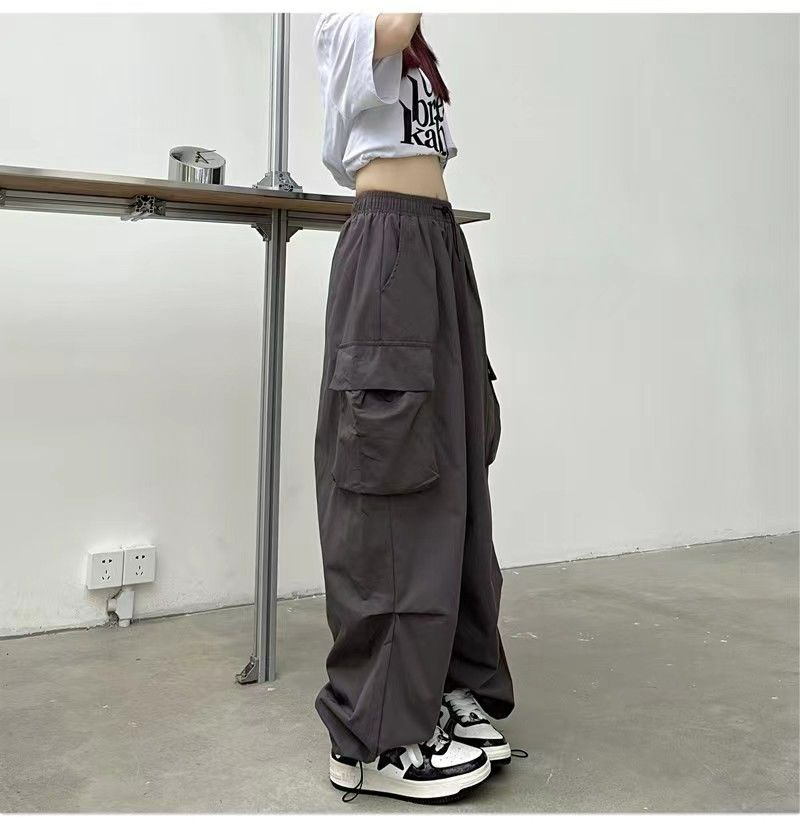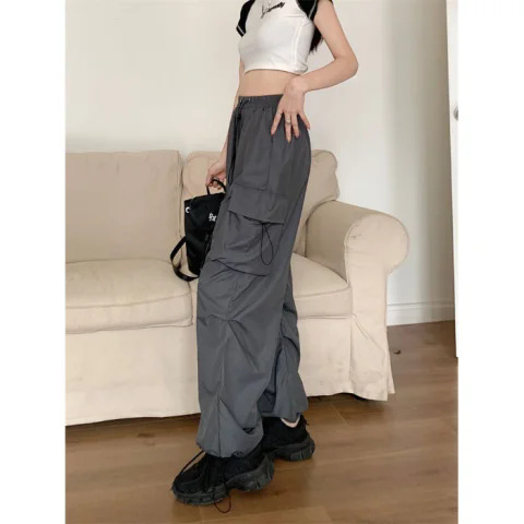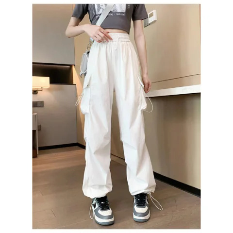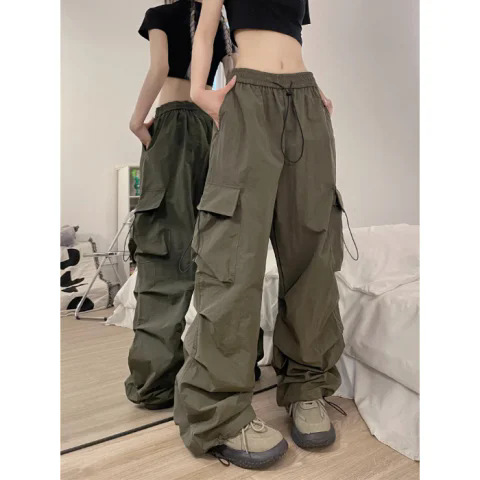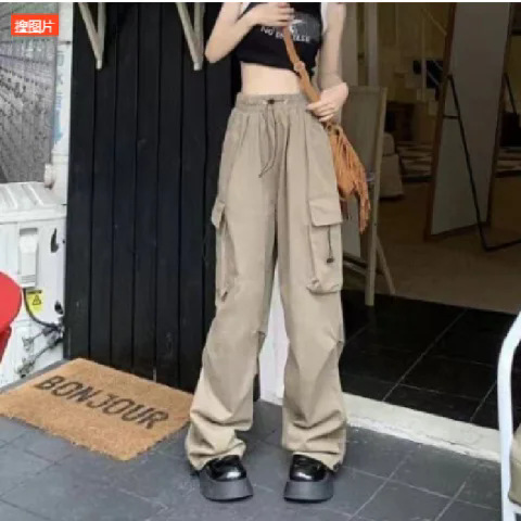 프렌치 작업복 여성 바지 2025 새로운 봄, 가을 충전 소형 와이드 레그 캐주얼 루즈 하이킹 스포츠 바지스토어 가기