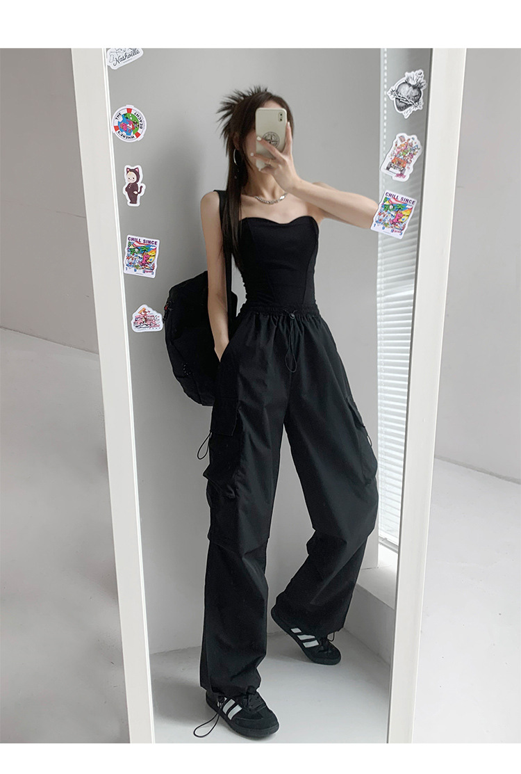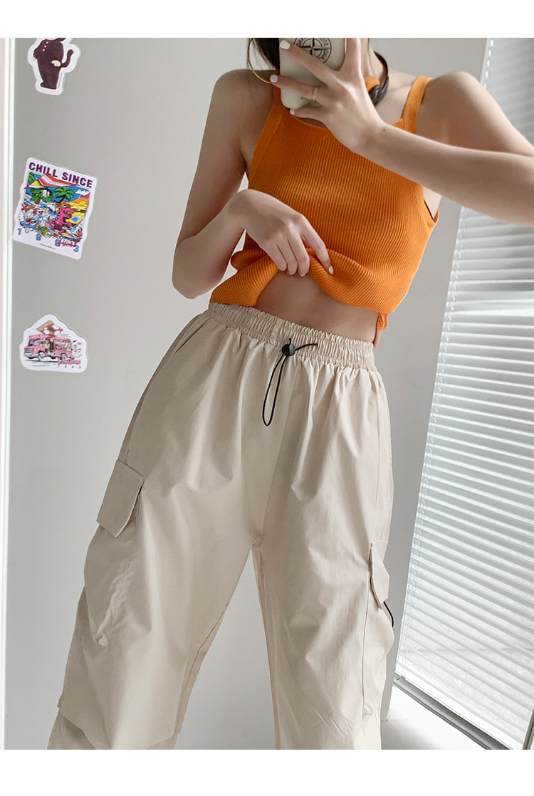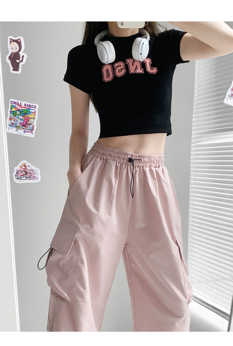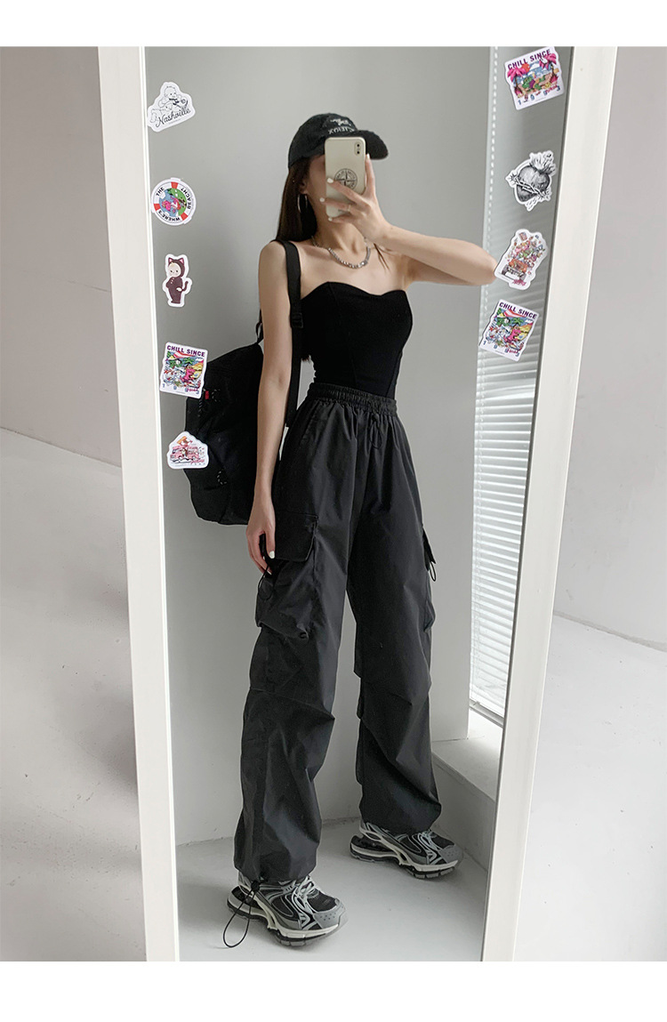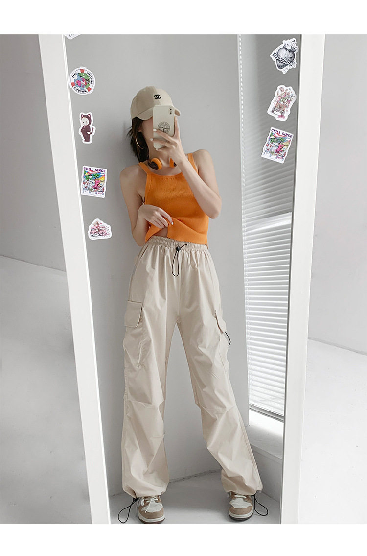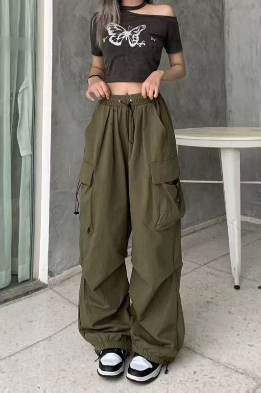 프렌치 작업복 여성 바지 2025 새로운 봄, 가을 충전 소형 와이드 레그 캐주얼 루즈 하이킹 스포츠 바지스토어 가기