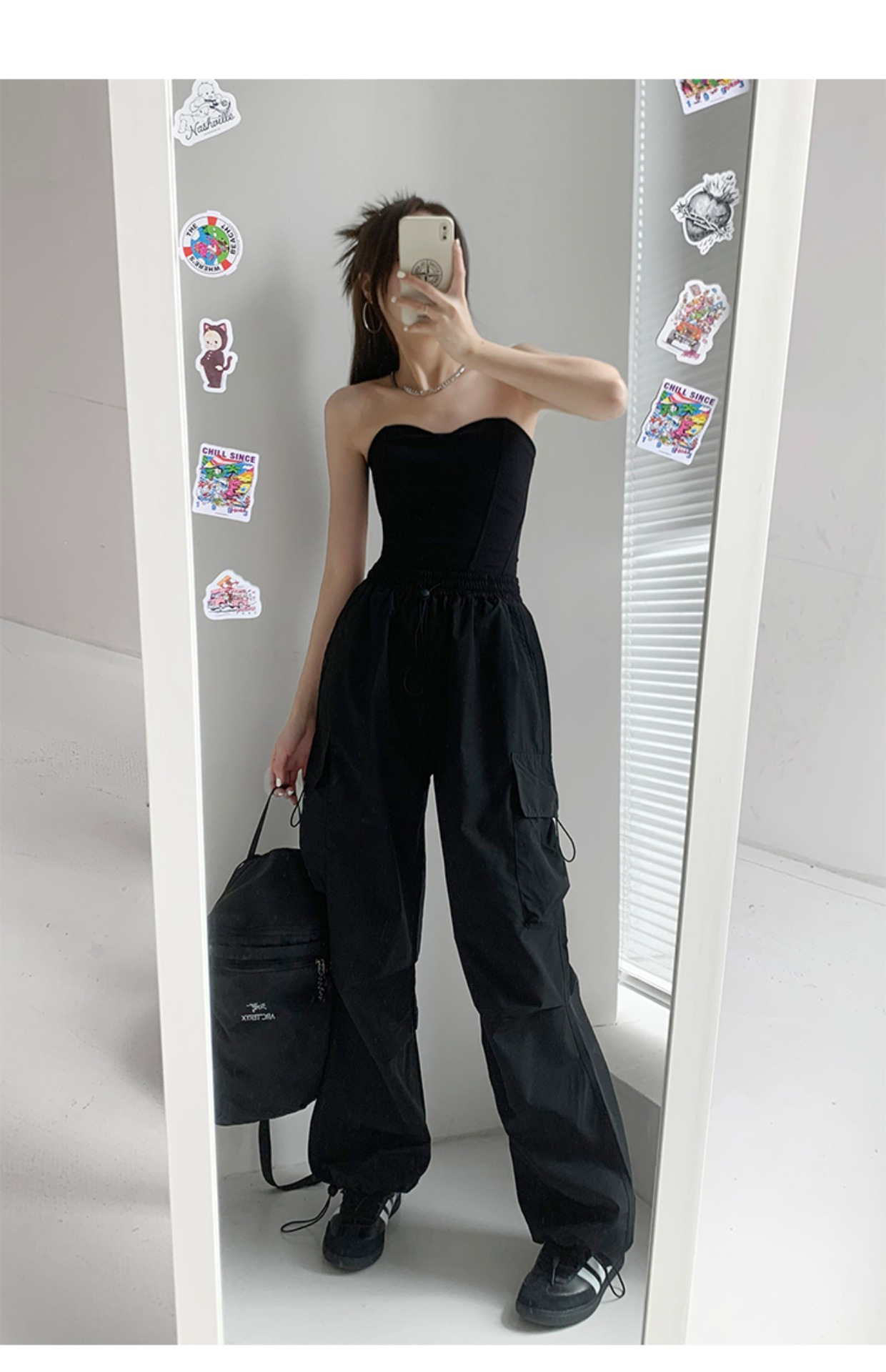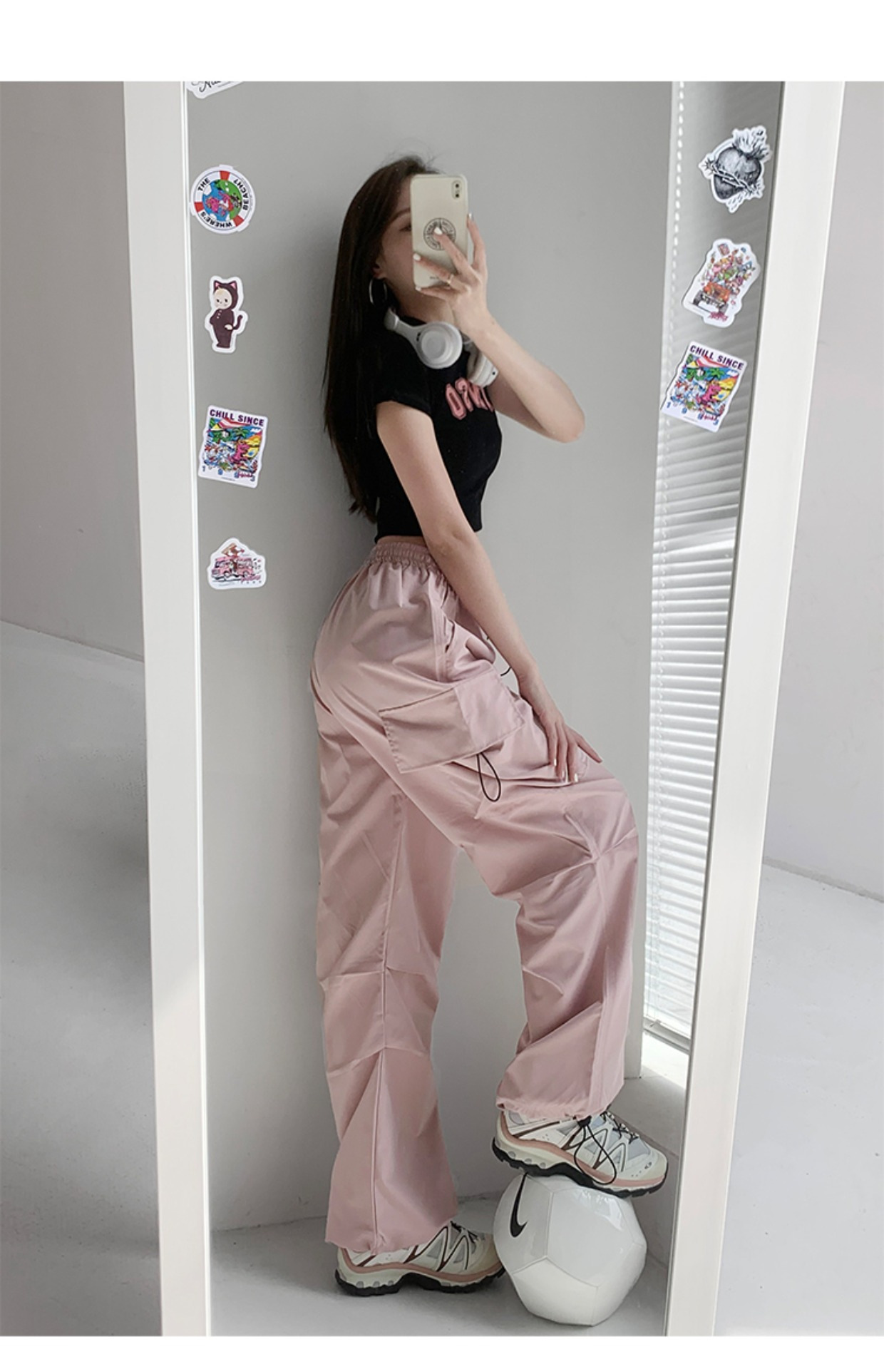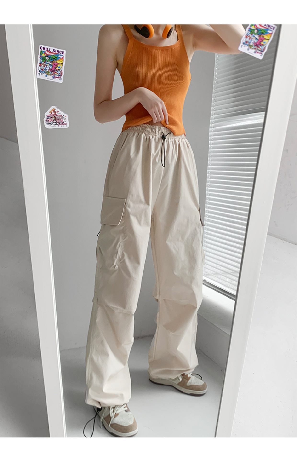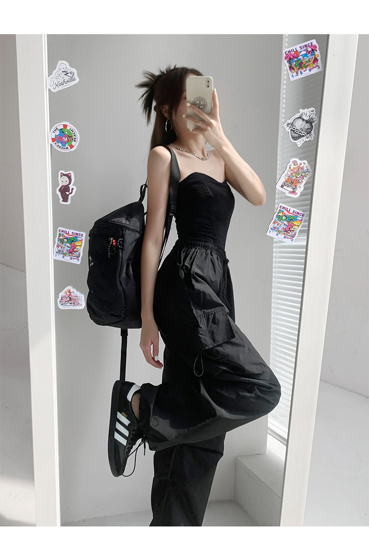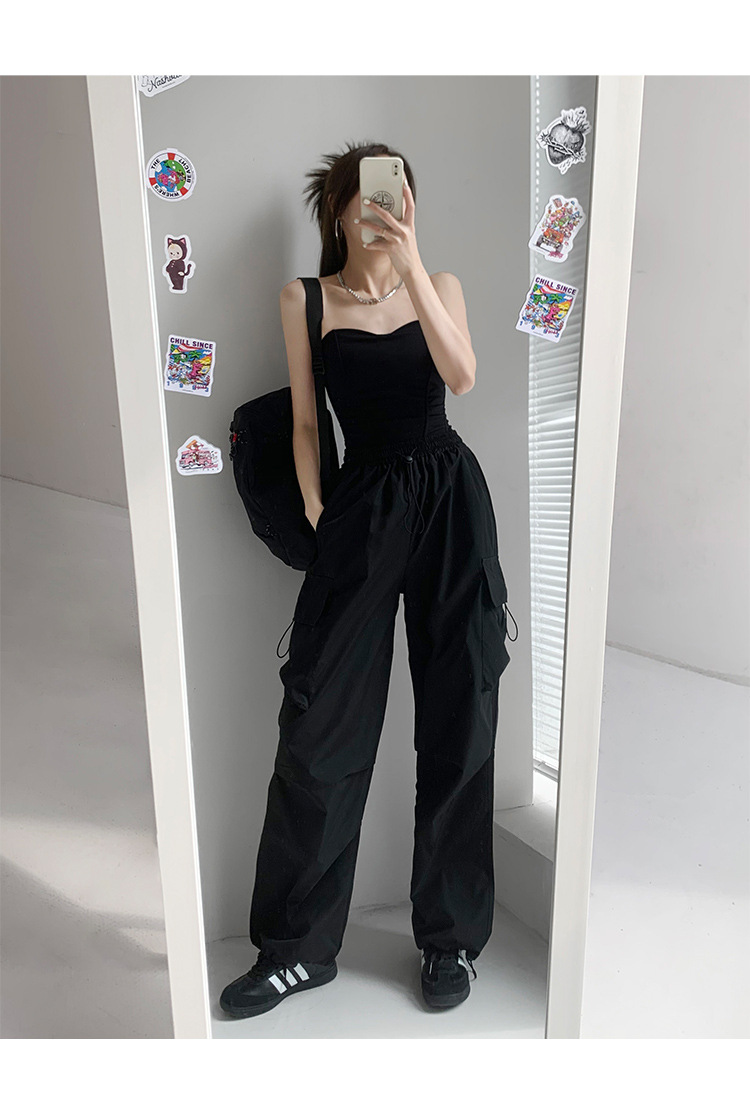 프렌치 작업복 여성 바지 2025 새로운 봄, 가을 충전 소형 와이드 레그 캐주얼 루즈 하이킹 스포츠 바지스토어 가기