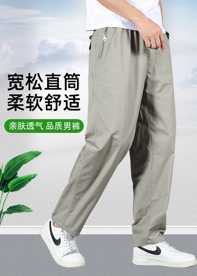 순수 면 남성용 툴링 바지 남성용 스트레이트 튜브 느슨한 여름 얇은 플러스 사이즈 바지 넓은 다리 캐주얼 바지스토어 가기